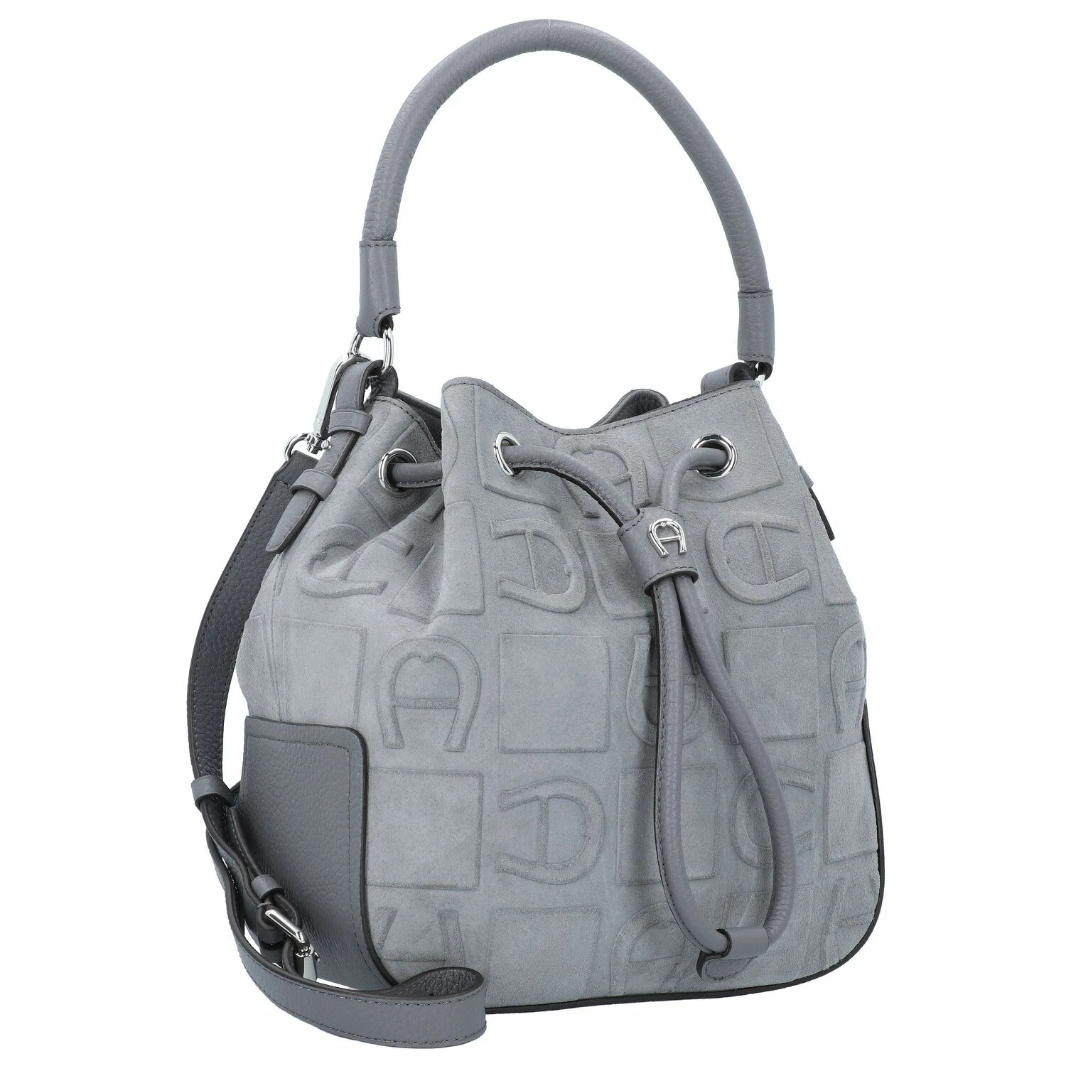 Bolso de piel de Aigner con bandolera desmontable. El bolso se cierra con un cordón y tiene un compartimento para el móvil y un bolsillo interior con cremallera.