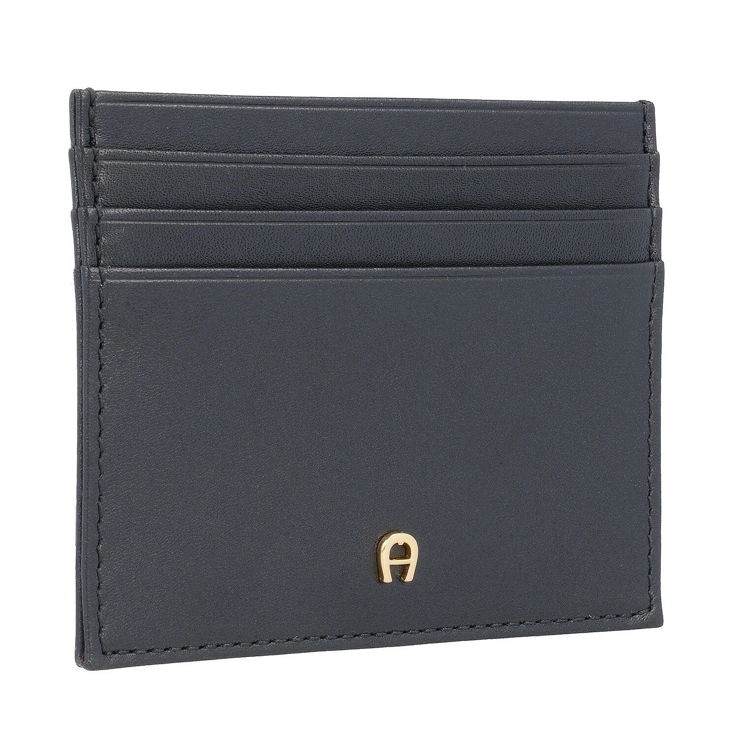 Estuche para tarjetas de crédito Aigner Daily Basis de piel de becerro de alta calidad. El sencillo logotipo de la herradura de latón con la «A» de Aigner, redondea con estilo el elegante diseño.