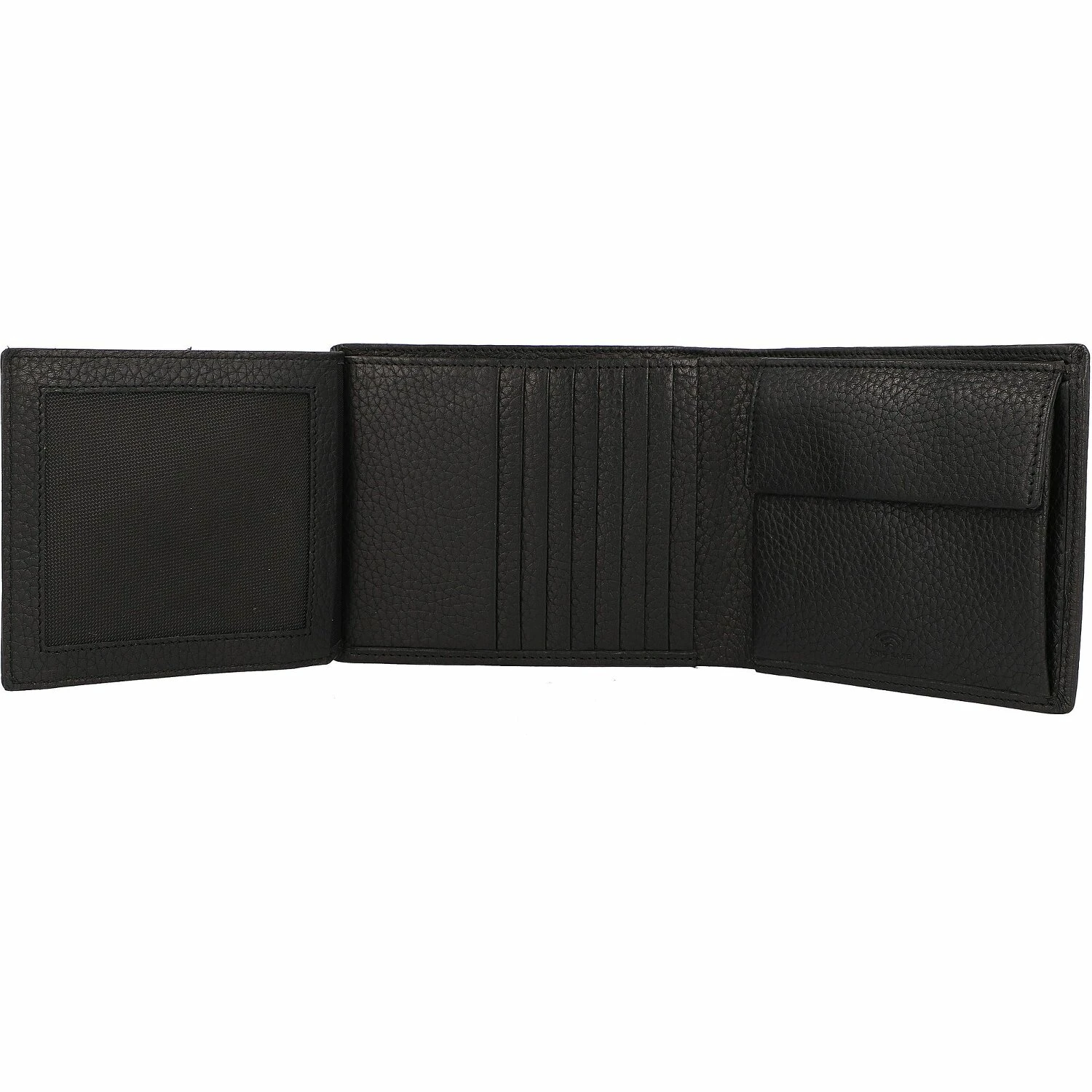 Cartera clásica de Bogner fabricada en piel granulada. El interior está inteligentemente dividido en un bolsillo monedero, un bolsillo de malla para el DNI y varias ranuras para tarjetas. La seguridad es aquí una prioridad absoluta gracias al bloqueo RFID integrado, que protege tus tarjetas del robo de datos.