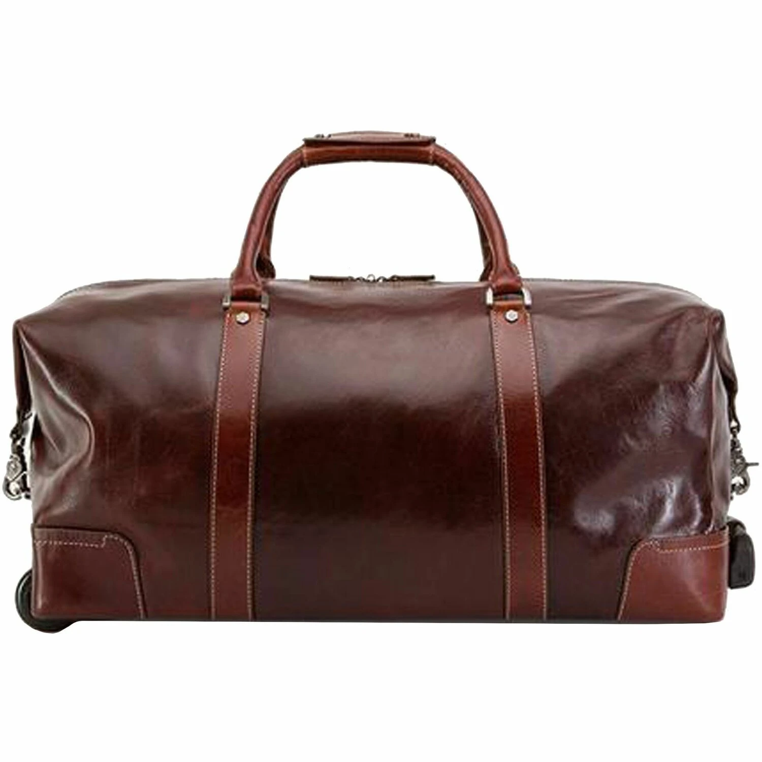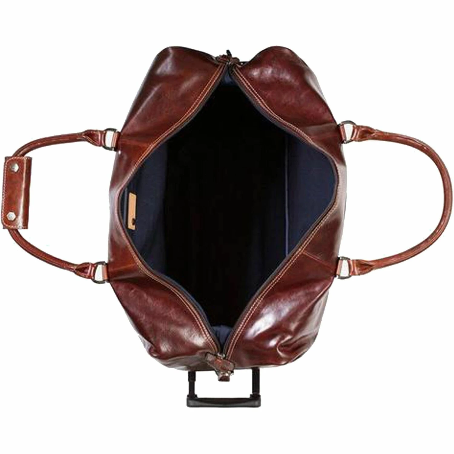Preciosa bolsa de viaje con ruedas silenciosas, fabricada con piel de vacuno bellamente curtida y con un bolsillo RFID para proteger sus datos confidenciales. El Oxford tiene mucho espacio para todas las cosas que necesitas llevar contigo en un gran fin de semana o un viaje corto con estilo. También se puede llevar cómodamente sin su práctica asa.