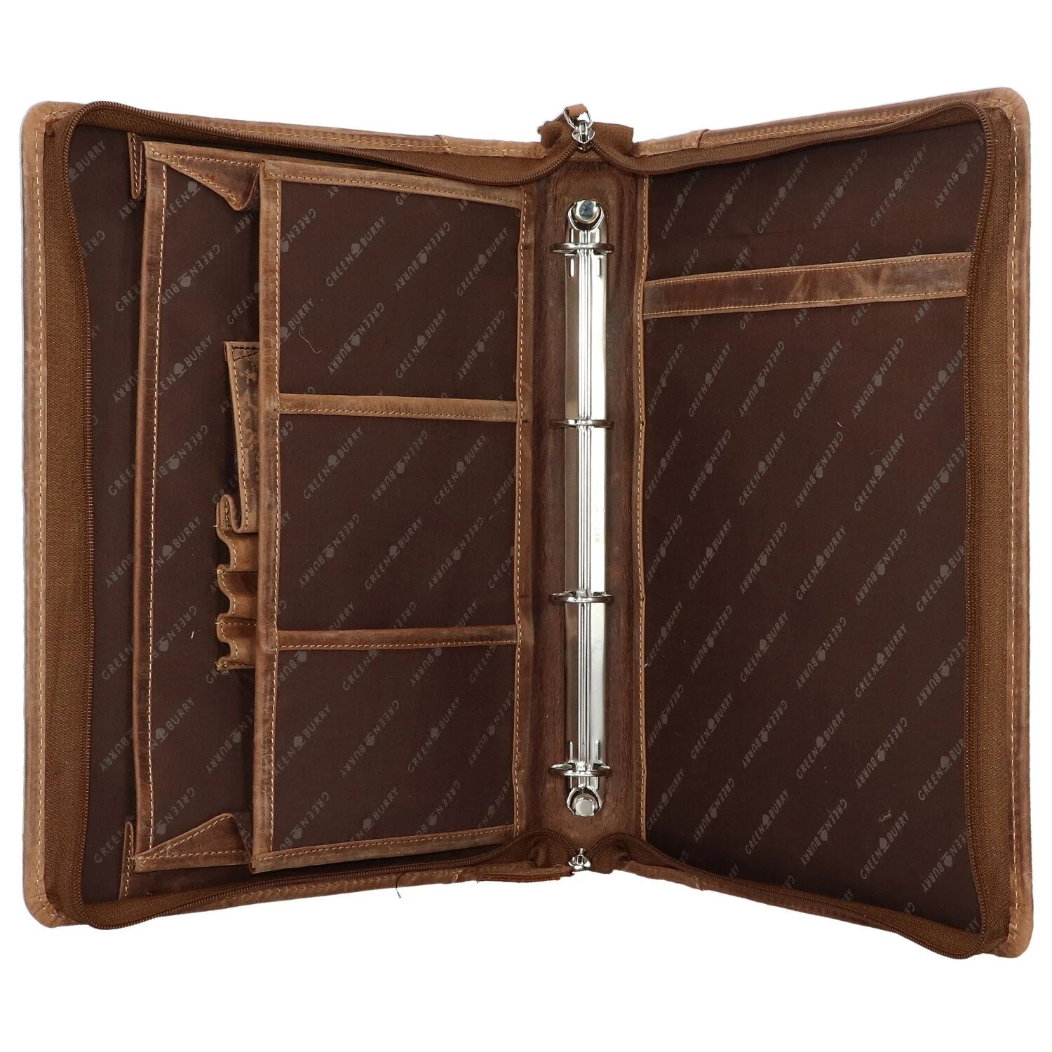Carpeta de anillos de piel de vaca pulida y encerada.