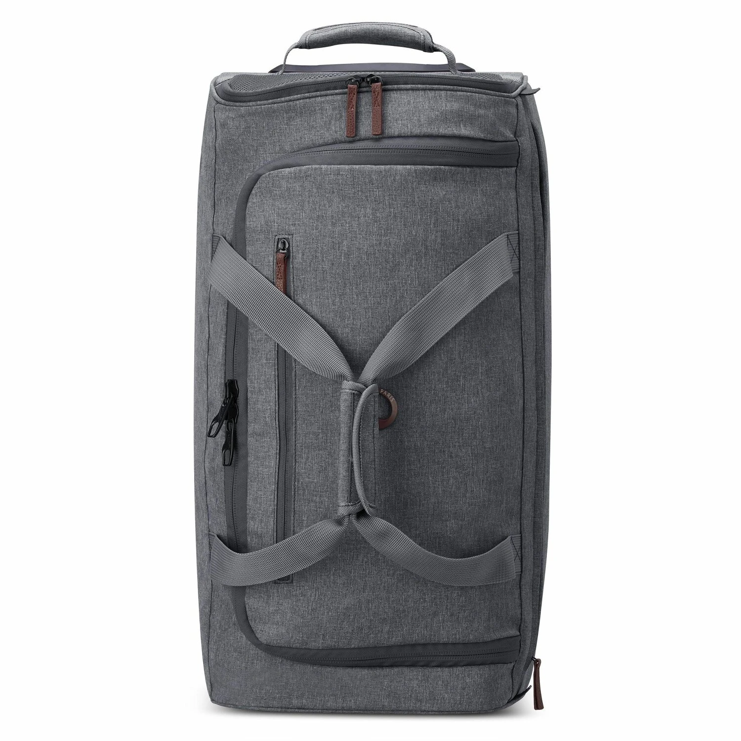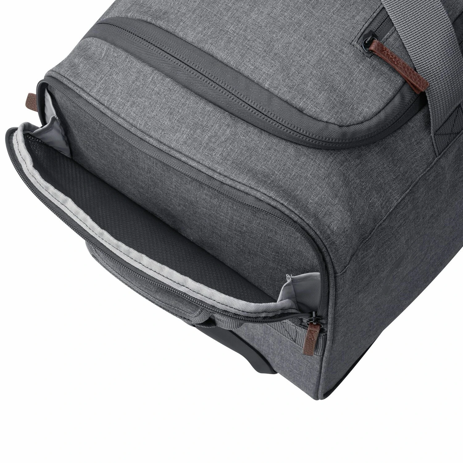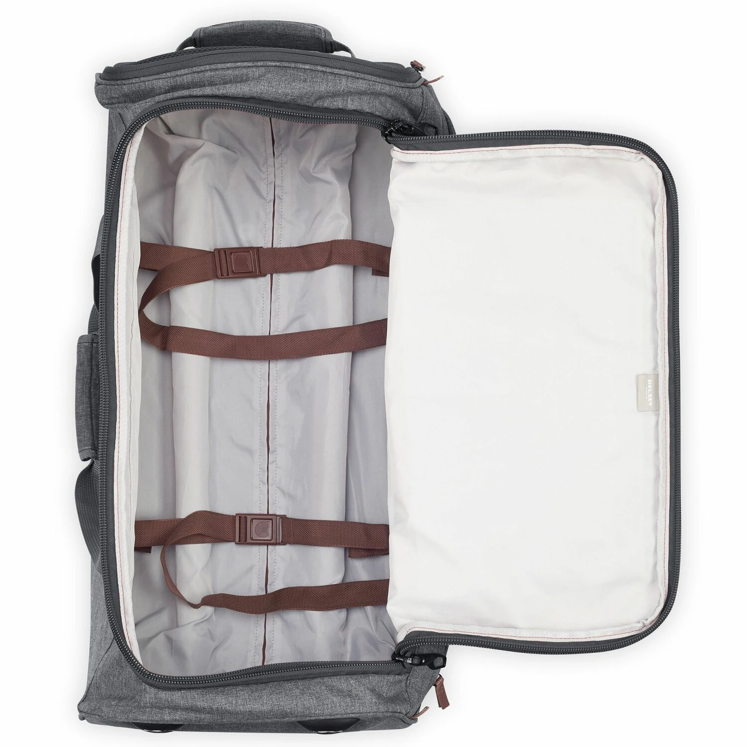 La práctica bolsa de viaje trolley de Delsey tiene un gran compartimento principal con correa de transporte y bolsillo con cremallera, así como un bolsillo adicional con cremallera en la parte delantera. La bolsa de viaje también está equipada con un asa telescópica bloqueable.
