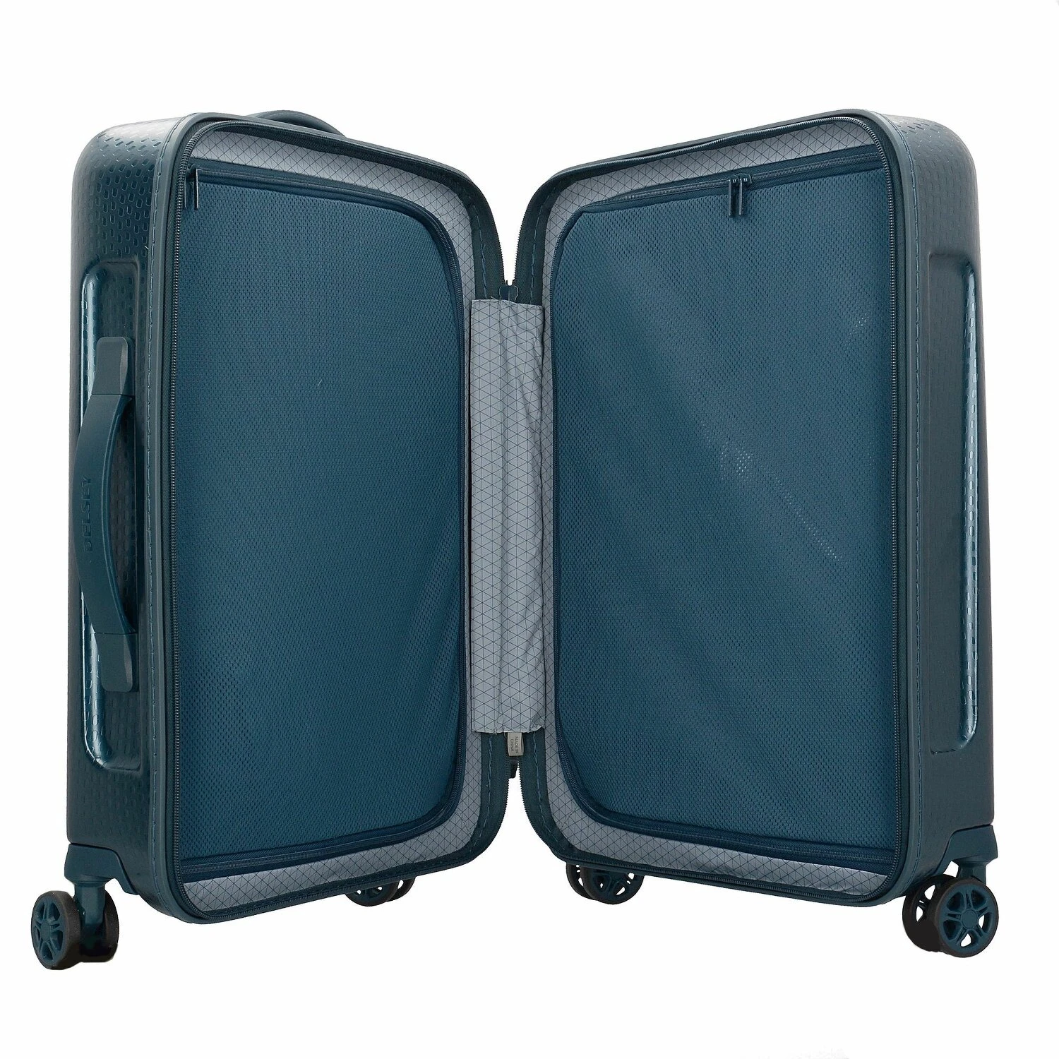 Trolley de cabina ultraligero y práctico de Delsey fabricado con material resistente. Ofrece mucho espacio interior y tiene 4 ruedas dobles de fácil deslizamiento.