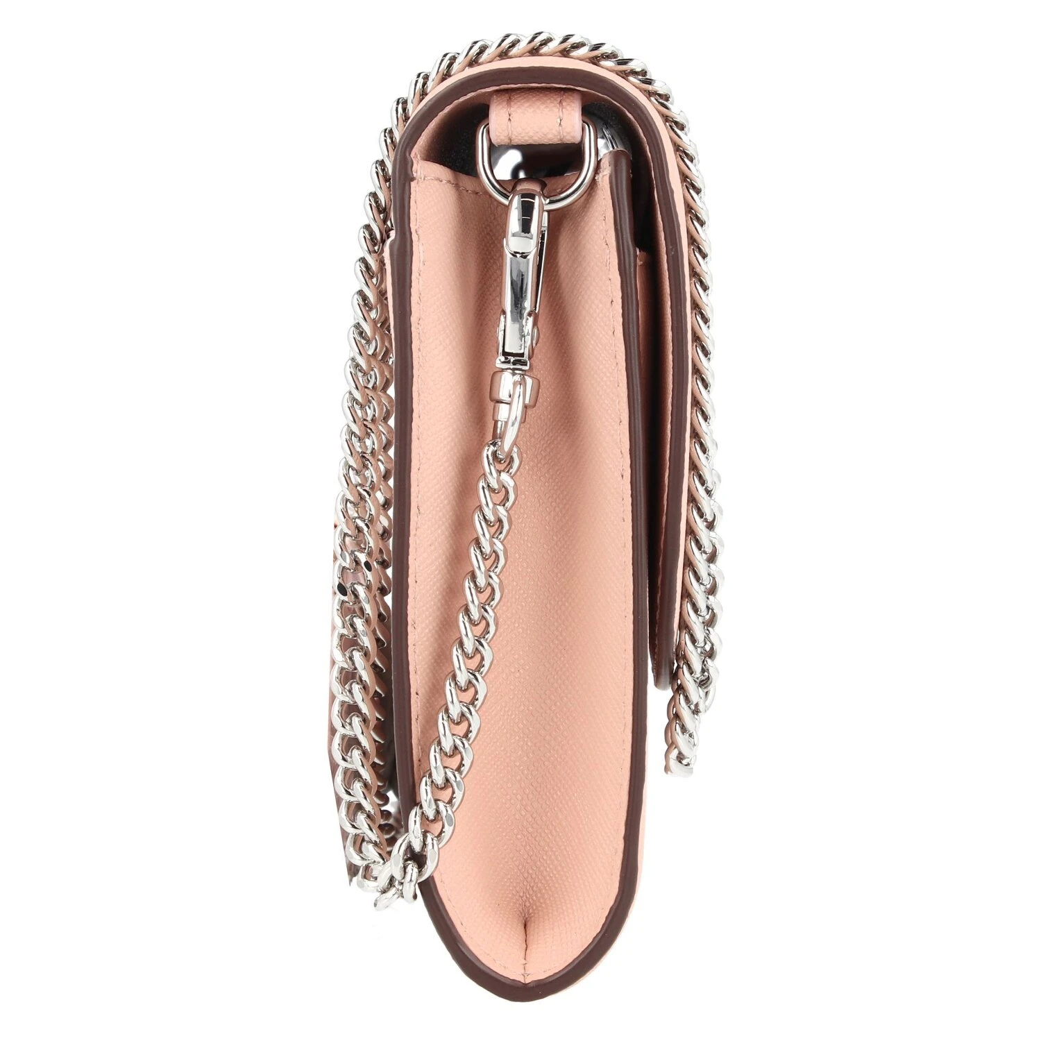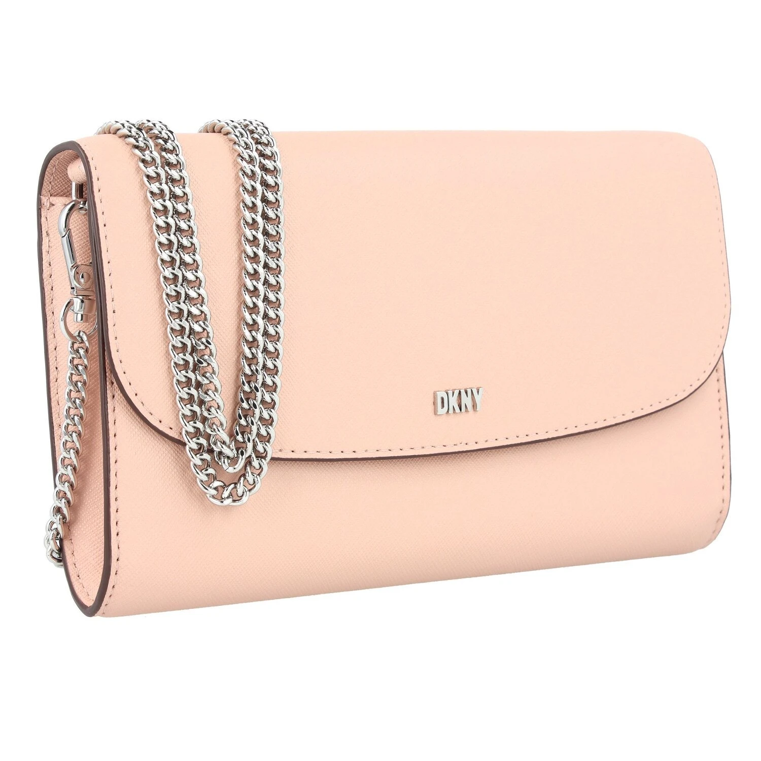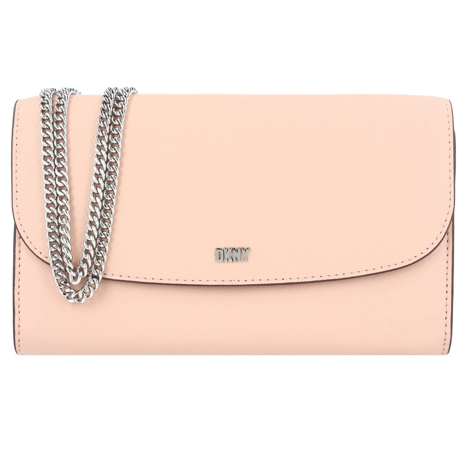 Elegante clutch para enamorarse de DKNY realizado en piel genuina y con correa de muñeca desmontable y un espejo en su interior. La bonita cadena de la correa hace que este bolso sea un reclamo y que arroje una gran luz sobre su estilismo.