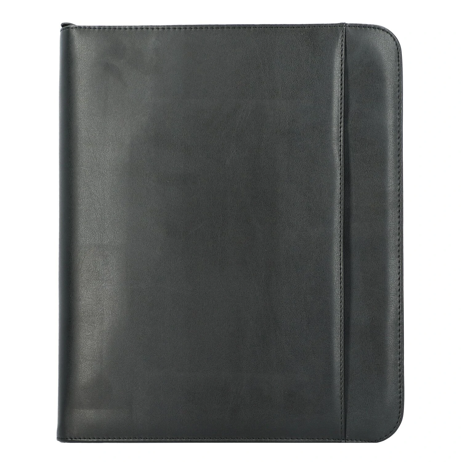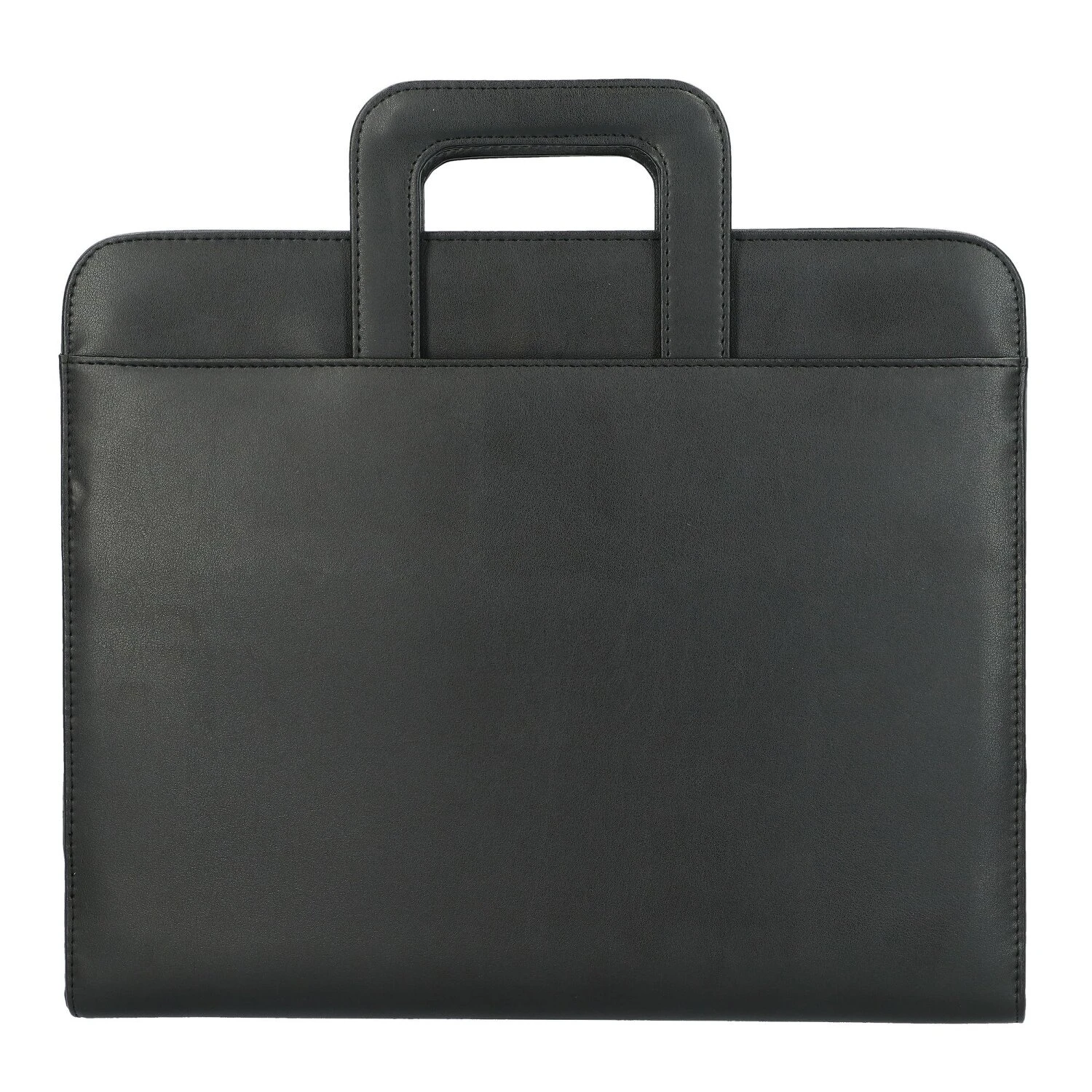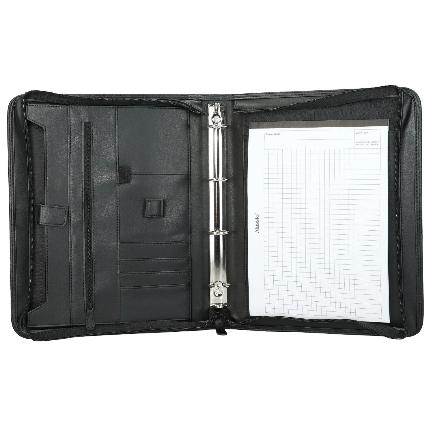 Elegante maletín de escritura de Alassio fabricado en polipiel con asas extensibles, mecanismo de anilla, bolsillos A4, un compartimento para tableta y portabolígrafos, así como tres compartimentos para tarjetas de crédito y lazo elástico. Un fiel compañero para el día a día en los negocios.