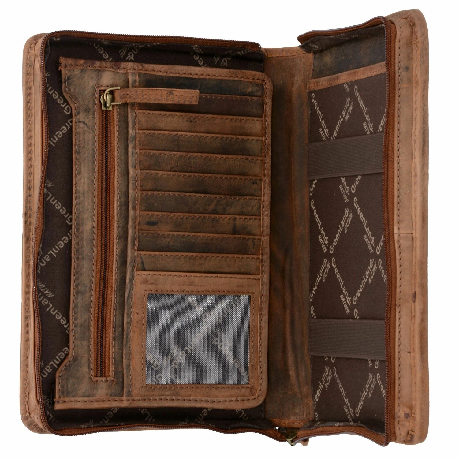 Robusto estuche de escritura de Greenland Nature fabricado en piel de alta calidad con un diseño atemporal. El estuche de escritura tiene un bolsillo para un bloc DIN A5, un bolsillo para una tableta y bolsillos para tarjetas de crédito.