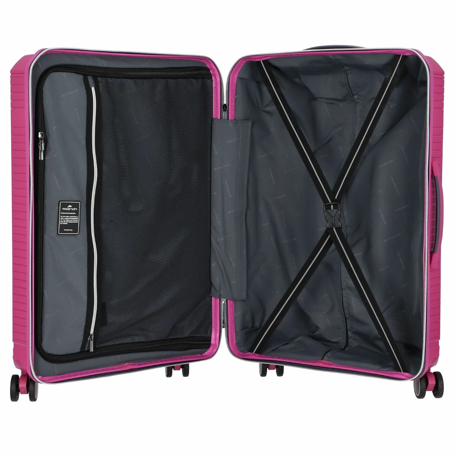 El juego de trolley Fjord de March15 Trading también está protegido contra pequeños impactos gracias a la robusta carcasa rígida de polipropileno. En el interior, las maletas ofrecen mucho espacio de almacenamiento, y el compartimento de malla y las correas cruzadas mantienen todo en su sitio incluso cuando estás de viaje. – Dimensiones: 38 cm x 20 cm x 55 cm / 45 cm x 25 cm x 66 cm / 51 cm x 30 cm x 76 cm – Volumen: 37 L / 68 L / 107 L – Peso: 2,3 kg / 3,0 kg / 3,9 kg.