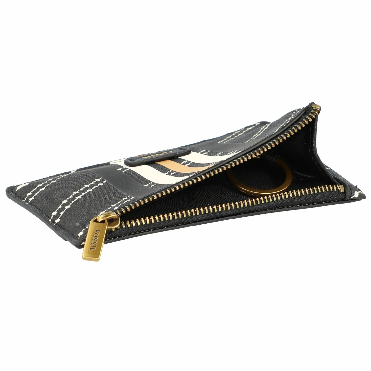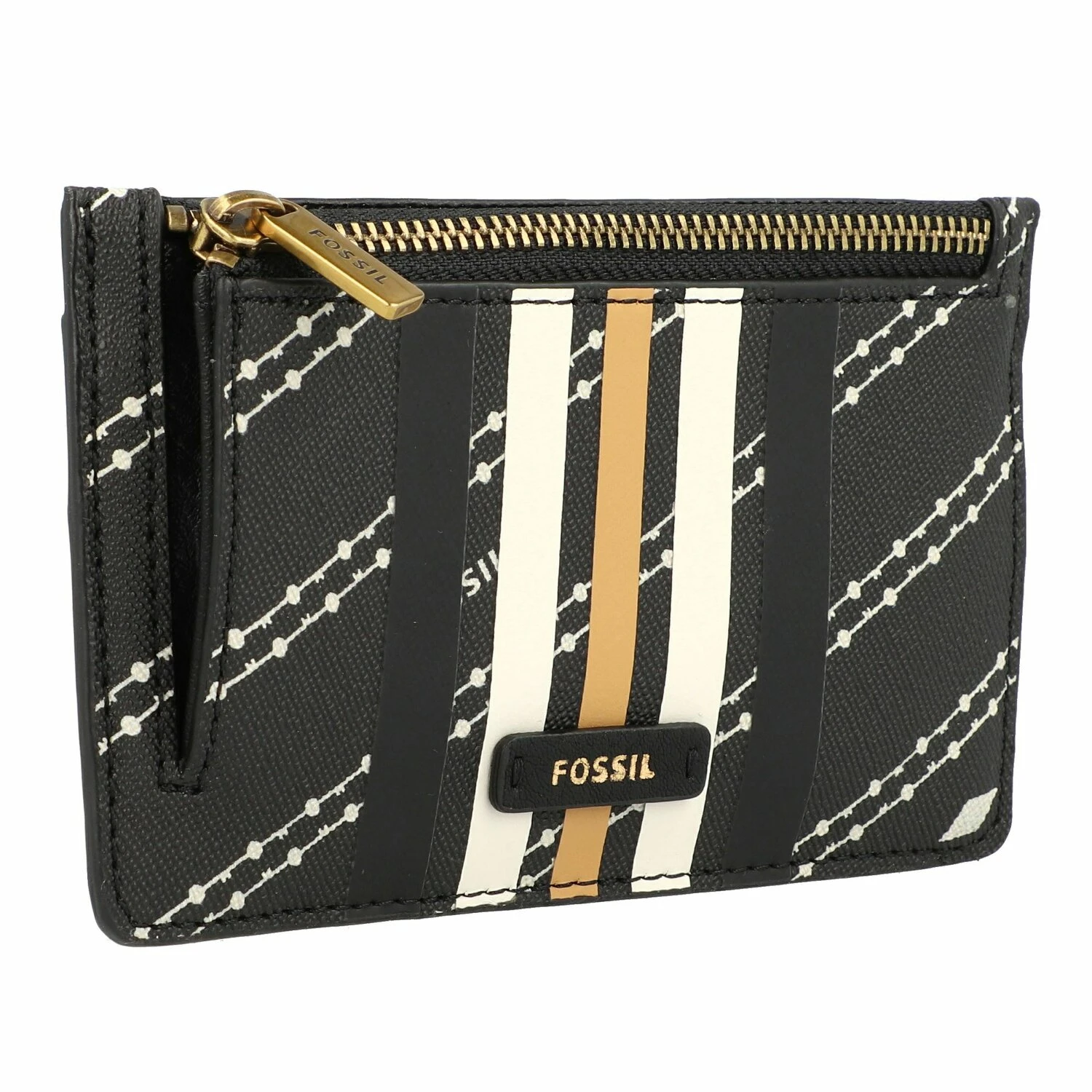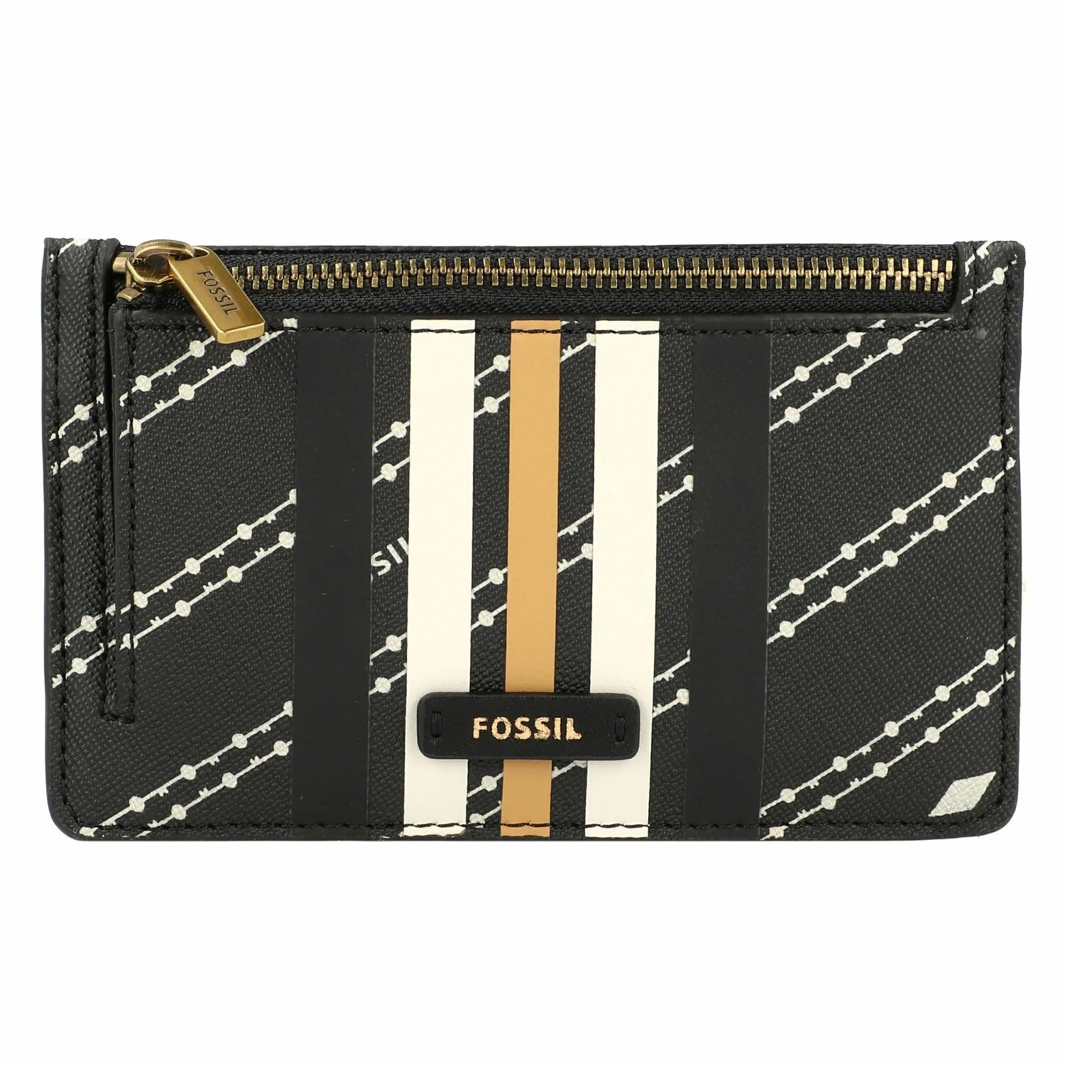 La cartera para llaves Fossil Logan, fabricada en material resistente, tiene un compartimento con cremallera con llavero, un bolsillo para el DNI, ranuras para tarjetas de crédito y un bolsillo extra en la parte trasera.