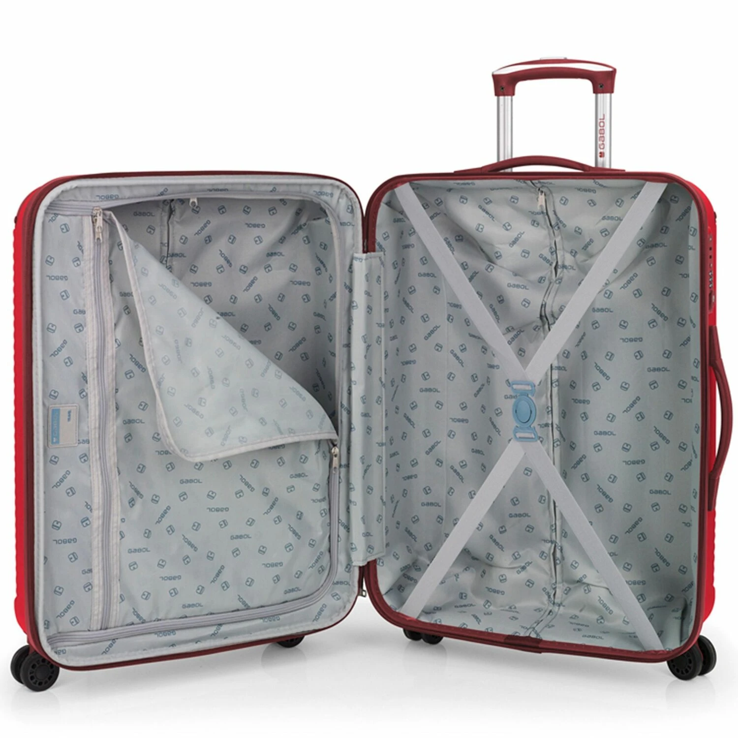 Robusto juego de maletas de 4 ruedas de la marca Gabol. Los trolleys con asa telescópica bloqueable son el compañero ideal para viajar e impresionan por su gran diseño interior, su fabricación de alta calidad, su estabilidad y su funcionalidad. Todos los trolleys están equipados con una cerradura TSA para mayor seguridad. – Dimensiones: 40 cm x 22-25 cm x 55 cm / 48 cm x 27-30 cm x 66 cm / 55 cm x 33-35 cm x 77 cm – Volumen: 40-45 L / 69-78 L / 112-119 L – Peso: 2,70 kg / 3,80 kg / 4,60 kg