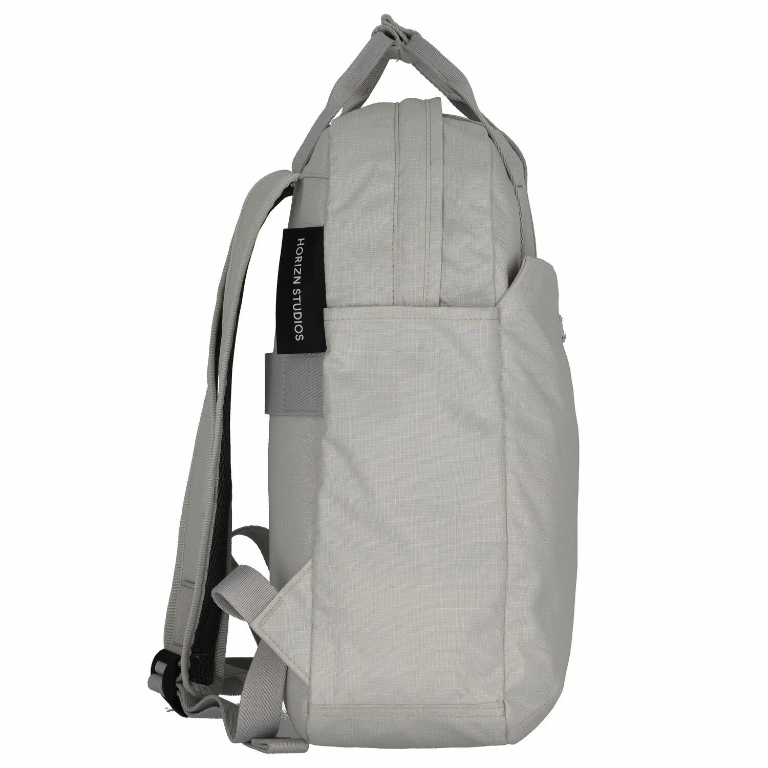 Moderna mochila de Horizn Studios con compartimentos laterales para paraguas o bolsillos y un compartimento con cremallera para un espacio de almacenamiento adicional. Hay un compartimento para el portátil en el compartimento principal. Gracias a la función de enganche del carro, la mochila es ideal para viajar.