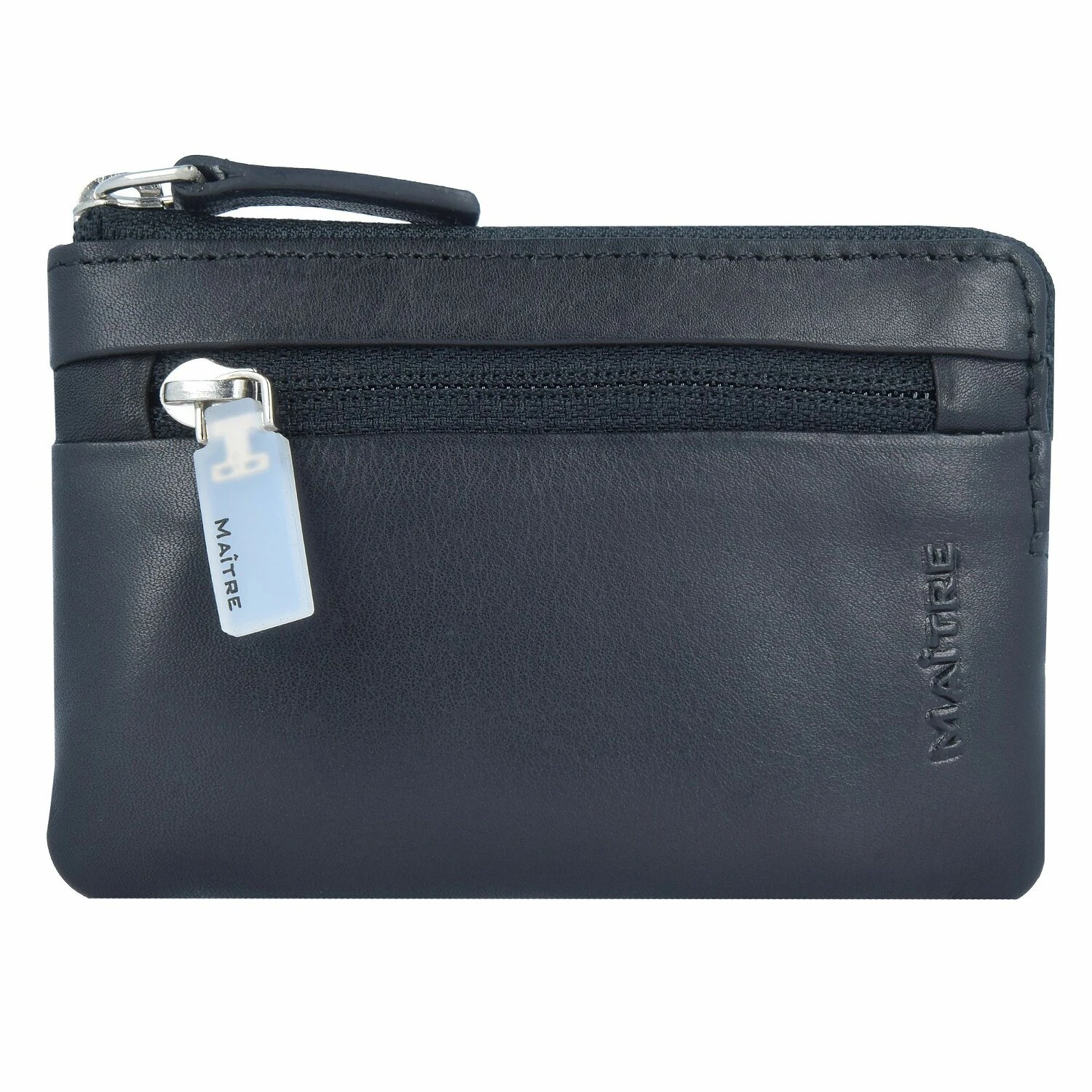 Estuche para llaves de la marca Maître fabricado en la mejor piel con un diseño moderno y minimalista. Con dos llaveros y bolsillo adicional con cremallera en la parte delantera.