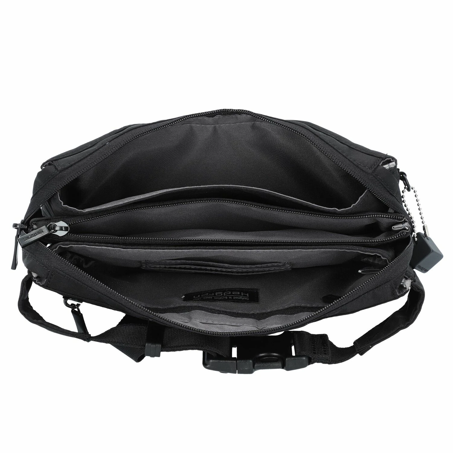 Moderna bolsa de cinturón de Hedgren fabricada con material resistente. La bolsa ofrece mucho espacio de almacenamiento en varios compartimentos. Además, la bolsa está equipada con un forro especial desarrollado para proteger los chips de identificación por radiofrecuencia de las tarjetas bancarias y de crédito de un escaneo no autorizado.