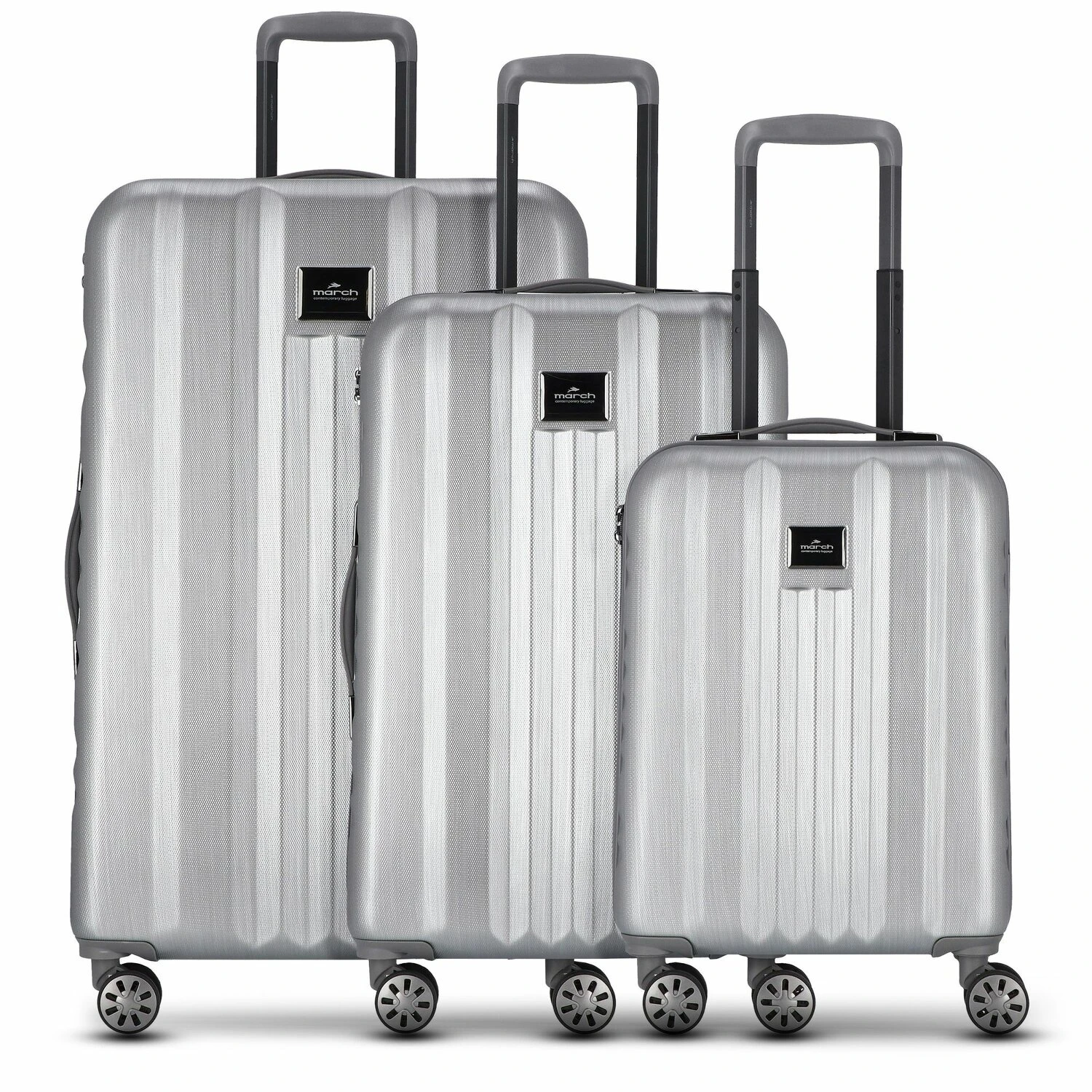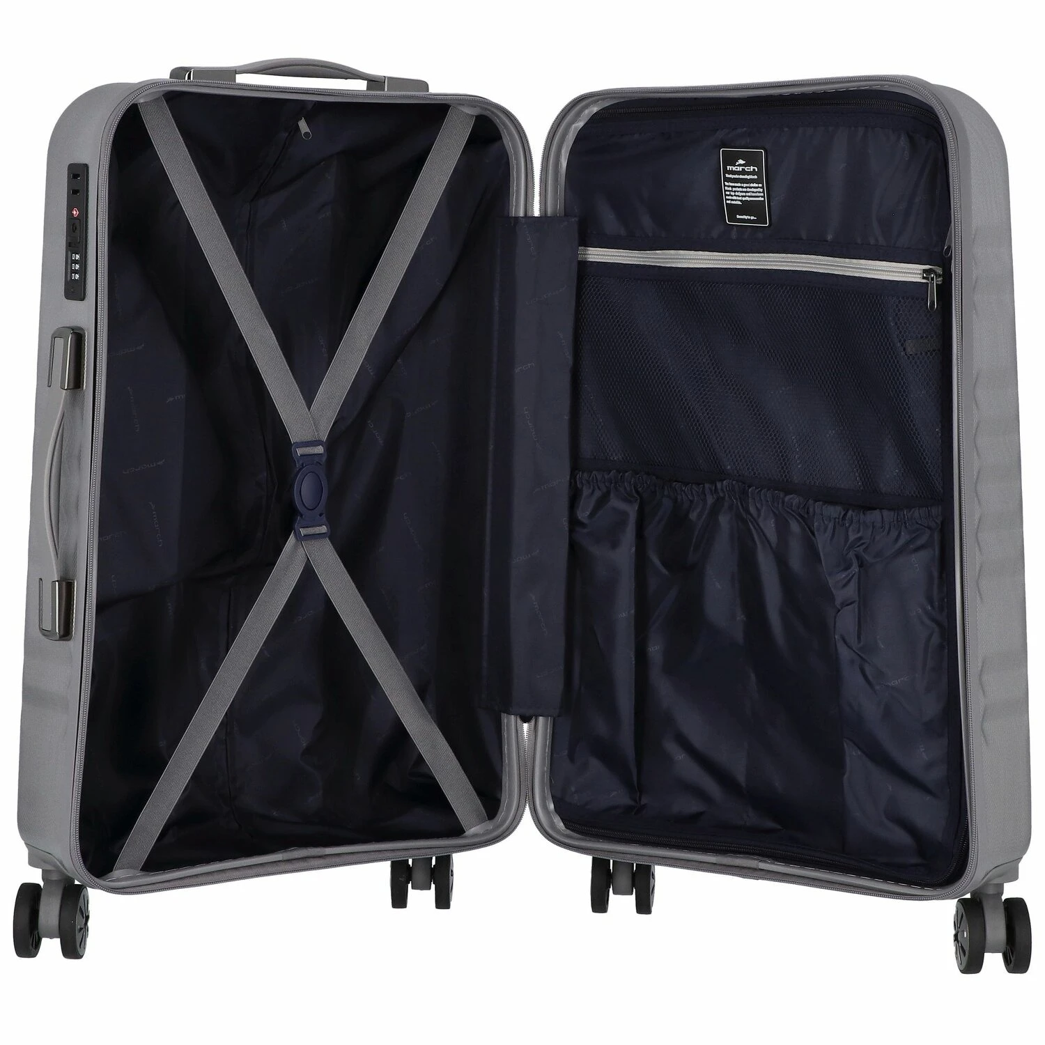 Hermosos carros con una llamativa estructura acanalada que ofrecen opciones de embalaje en ambos lados. La correa transversal asegura que todo se mantenga en su sitio durante el viaje. Las ruedas de marcha suave ofrecen una buena transportabilidad. El asa telescópica puede bloquearse varias veces y la cerradura de combinación proporciona la seguridad necesaria para el contenido del equipaje. – Dimensiones: 35 cm x 20 cm x 55 cm / 40 cm x 26 cm x 65 cm / 47 cm x 30 cm x 75 cm – Volumen: 34 L / 62 L / 97 L – Peso: 2,40 kg / 3,30 kg / 3,90 kg