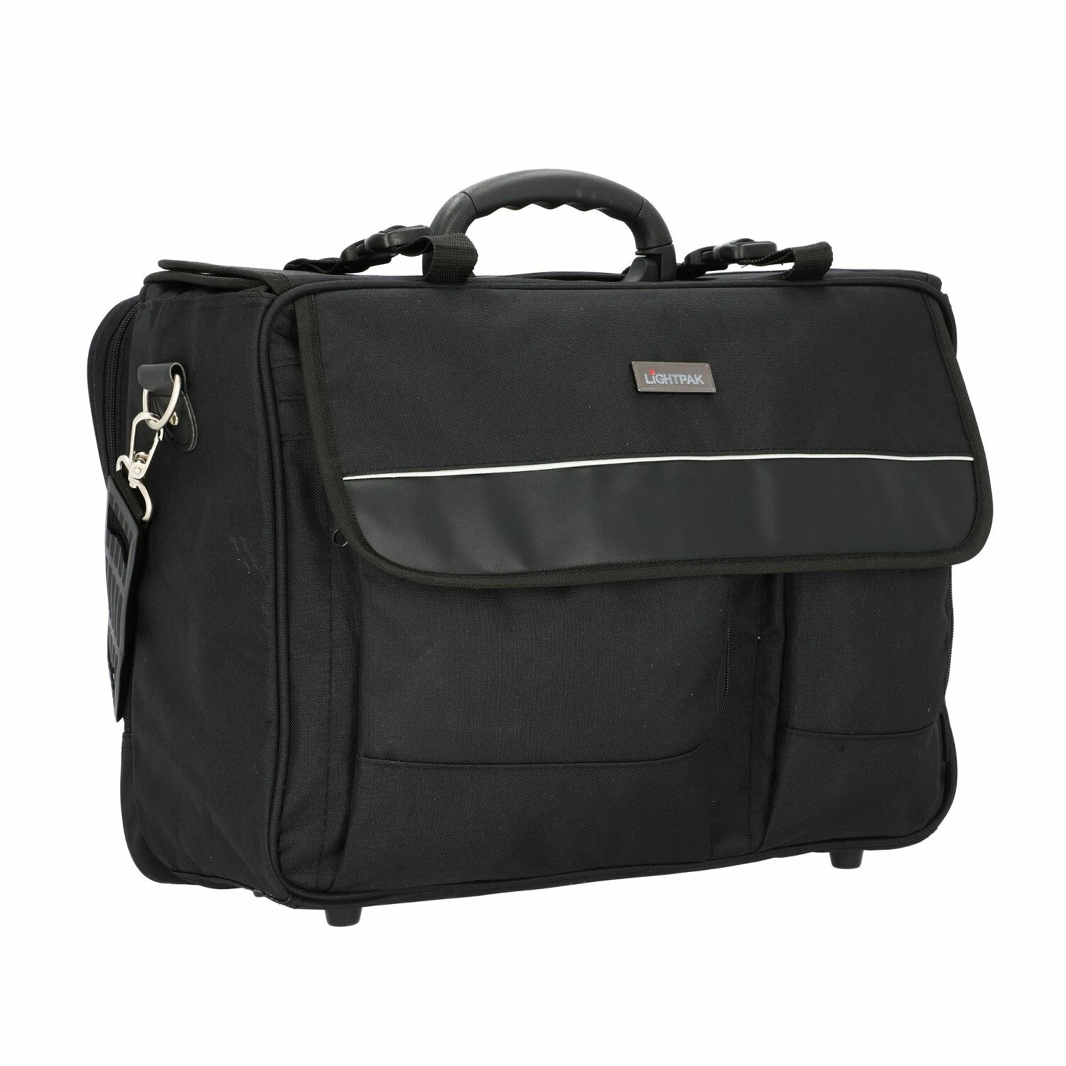Espaciosa y práctica bolsa de tablero de Lightpak con correa para el hombro desmontable y ajustable y un compartimento acolchado para el portátil. Dispone de numerosos compartimentos para documentos A4, carpetas, bolígrafos, tarjetas de crédito y ofrece una buena visión de conjunto y orden. Una lengüeta deslizante en la parte posterior permite sujetar la bolsa al asa extensible de un trolley. El compañero práctico para los viajes de negocios.