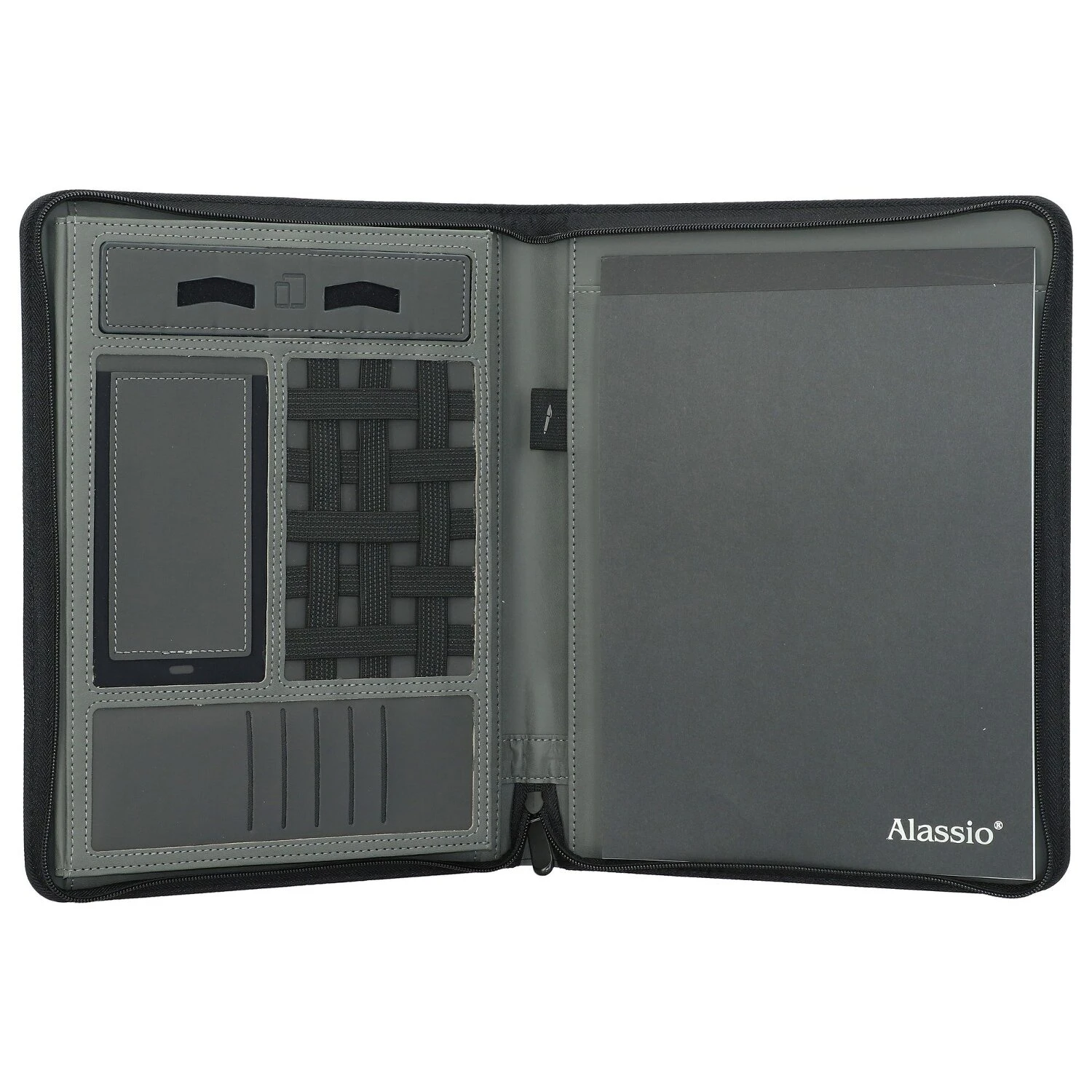 La robusta carpeta de conferencias Forum de Alassio es un accesorio práctico y bien pensado para los negocios y el estudio. La carpeta impresiona por su diseño atemporal y su interior bien pensado. Está equipada con un compartimento para ordenador portátil o tableta, un compartimento para teléfono móvil, presillas para bolígrafos, bolsillos para tarjetas de crédito o de visita y presillas elásticas para una mejor organización. El soporte integrado para teléfono móvil o tableta es lo que hace atractiva esta carpeta.