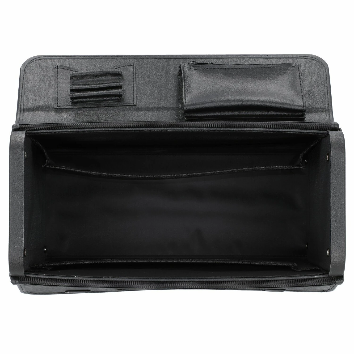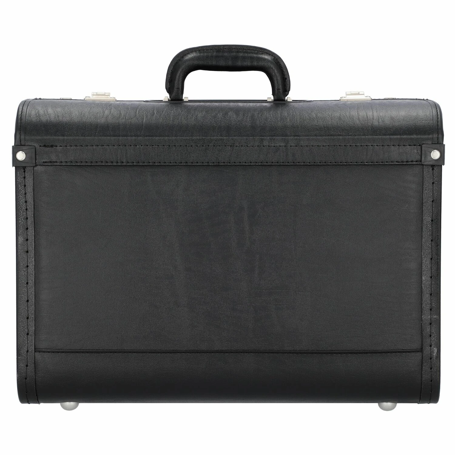 Robusto maletín de piloto de Alassio fabricado en polipiel de alta calidad. El maletín ofrece mucho espacio para sus documentos y utensilios de trabajo. El compartimento principal está equipado con dos compartimentos para documentos y espacio suficiente para una carpeta grande. Los dos compartimentos laterales ofrecen más espacio para su teléfono móvil, bolígrafos y otros utensilios de trabajo.