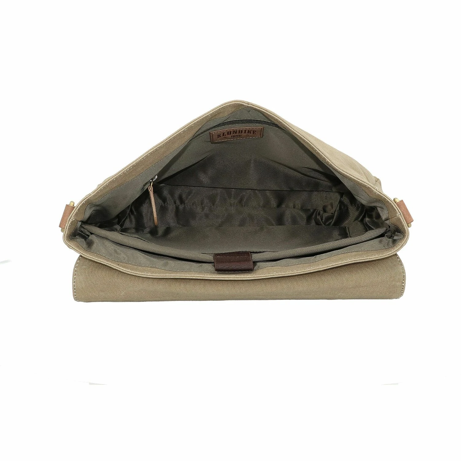 Práctica bandolera de lona robusta. Con compartimento para el portátil y compartimentos adicionales para objetos de valor.