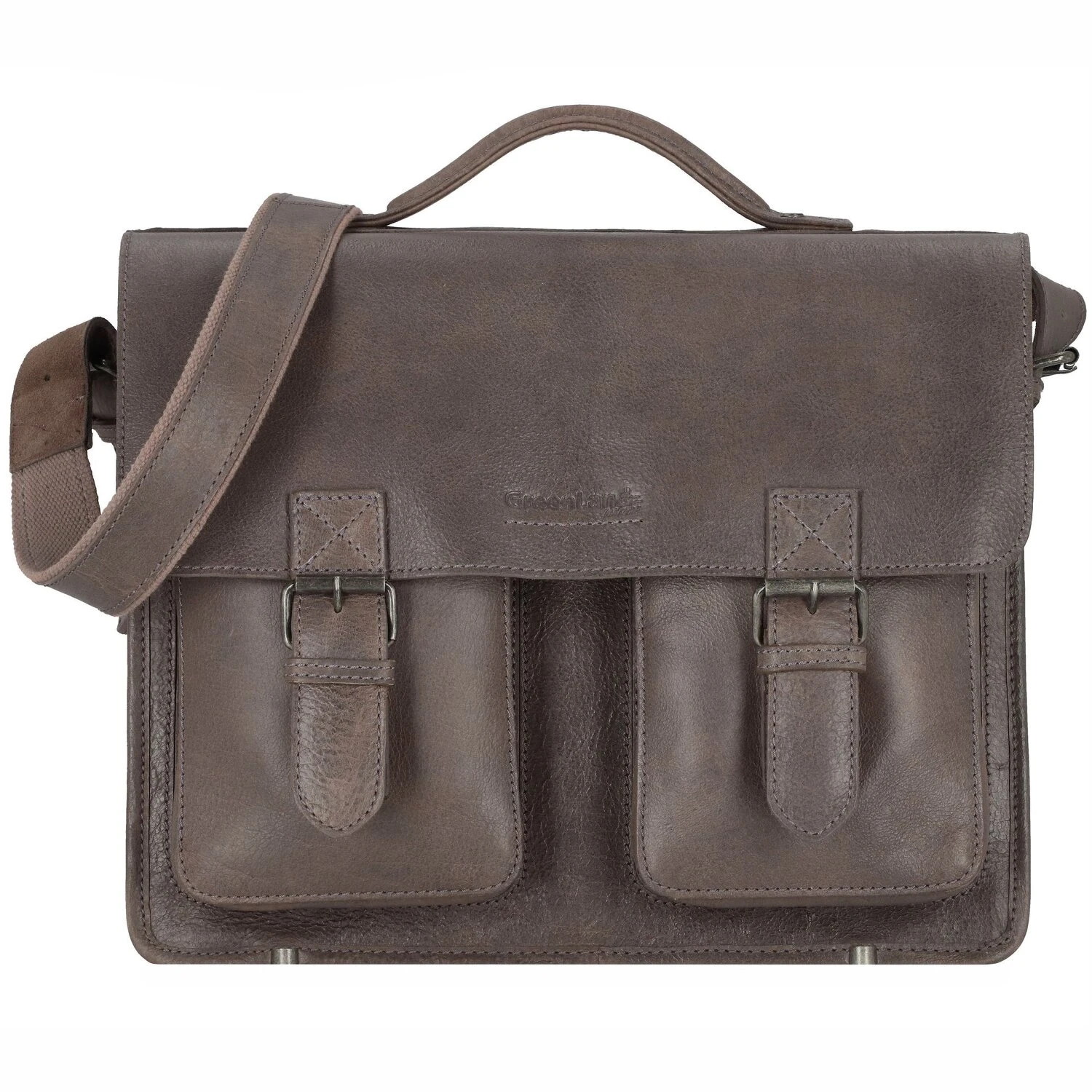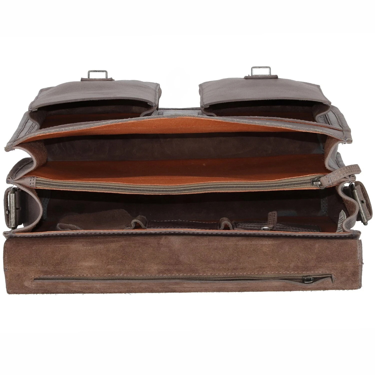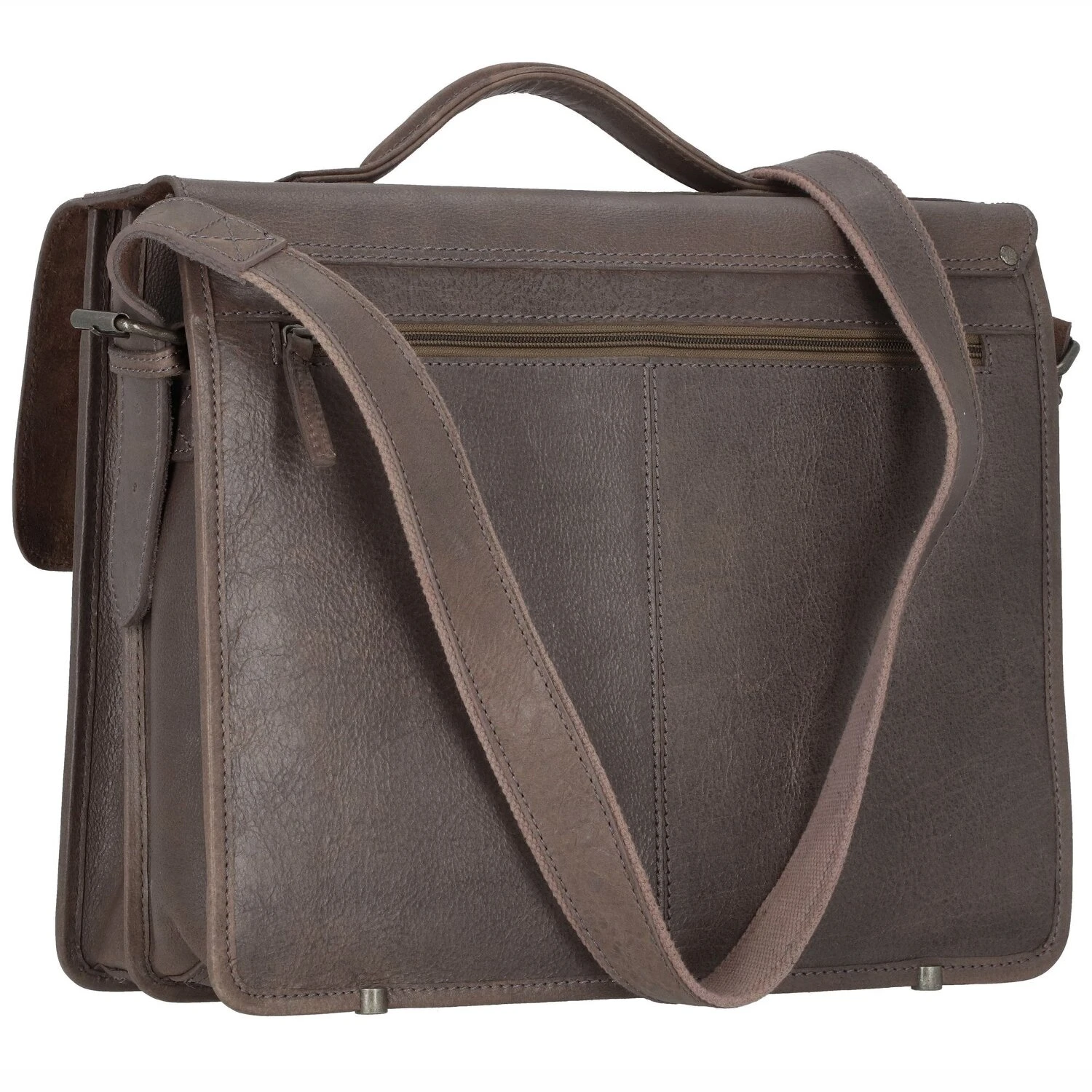 Maletín de alta calidad de Greenland Nature fabricado en piel fina. El maletín impresiona por su alta calidad de elaboración, su funcionalidad y su diseño clásico y atemporal. Dispone de tres grandes compartimentos principales, dos compartimentos con cremallera, dos bolsillos delanteros, así como compartimentos para teléfono móvil y tarjetas de crédito, por lo que ofrece mucho espacio y una visión de conjunto óptima. Gracias a la correa de piel desmontable incluida, también puede llevarse como bandolera.