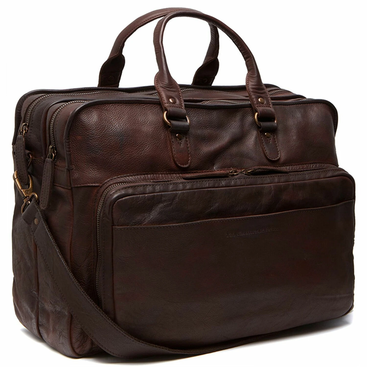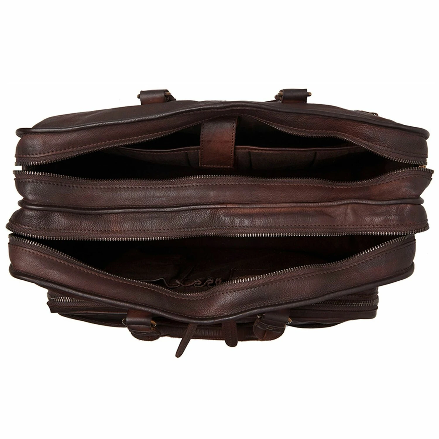 La espaciosa bolsa de cuero con 2 compartimentos principales ofrece suficiente espacio para el portátil y las carpetas de archivos. Un compartimento con cremallera en la parte delantera ofrece espacio de almacenamiento adicional.