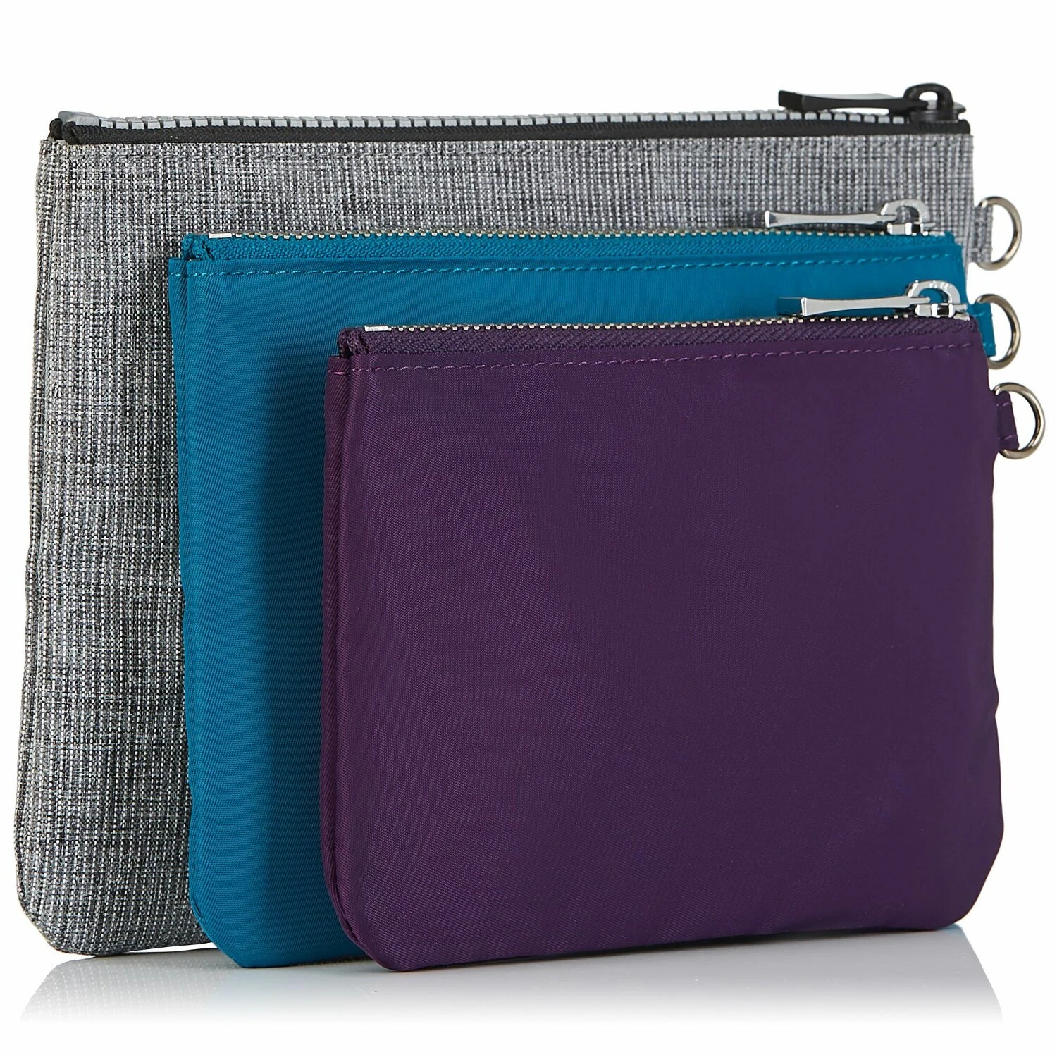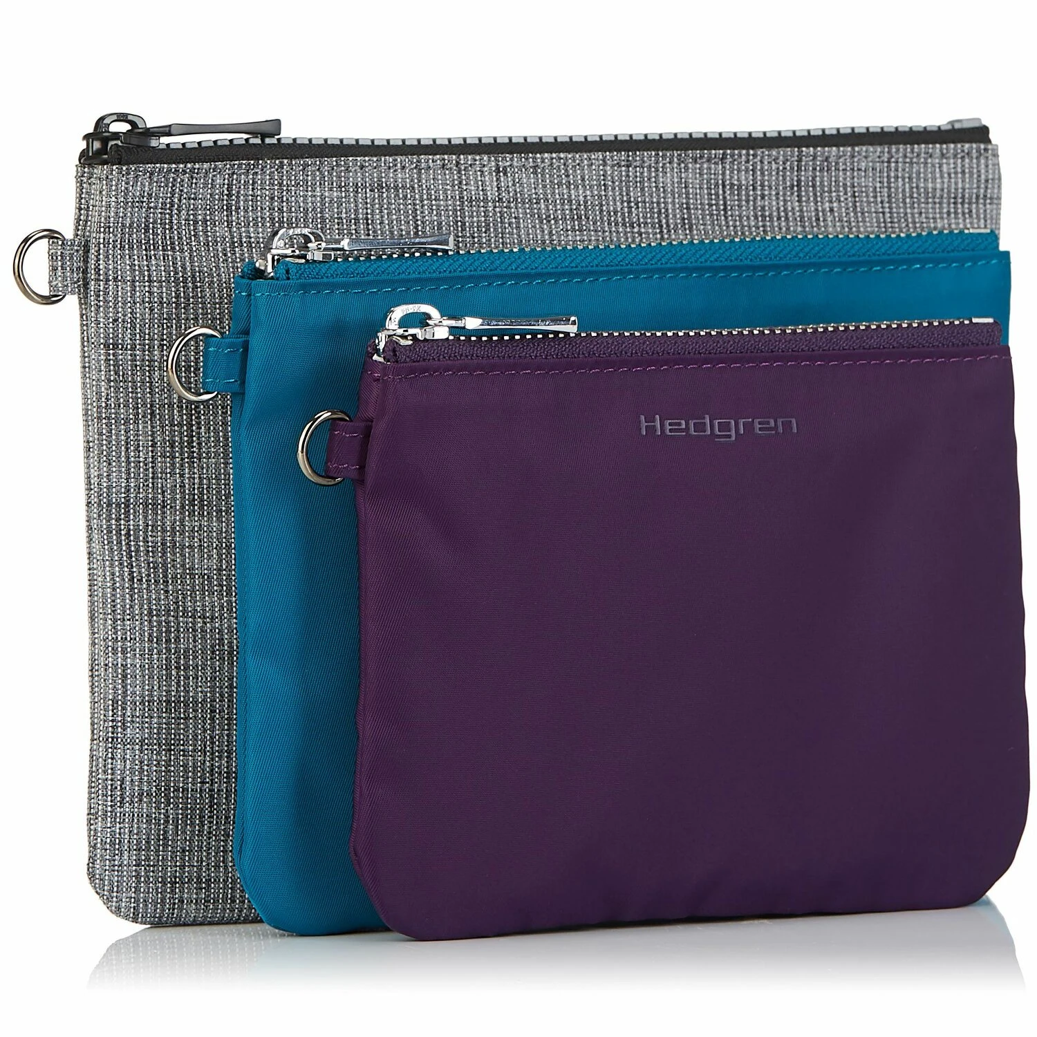 Conjunto de moda de la serie Marc de Hedgren. Práctico estuche para el dinero, las joyas o los artículos de papelería, o como cómodo neceser, este versátil bolso ofrece mucho espacio con tres compartimentos principales para guardar los utensilios importantes para el día a día. La bolsa pequeña mide 11cm x 1cm x 15cm, la mediana 12,5cm x 1cm x 18cm y la grande 21cm x 1cm x 14cm.