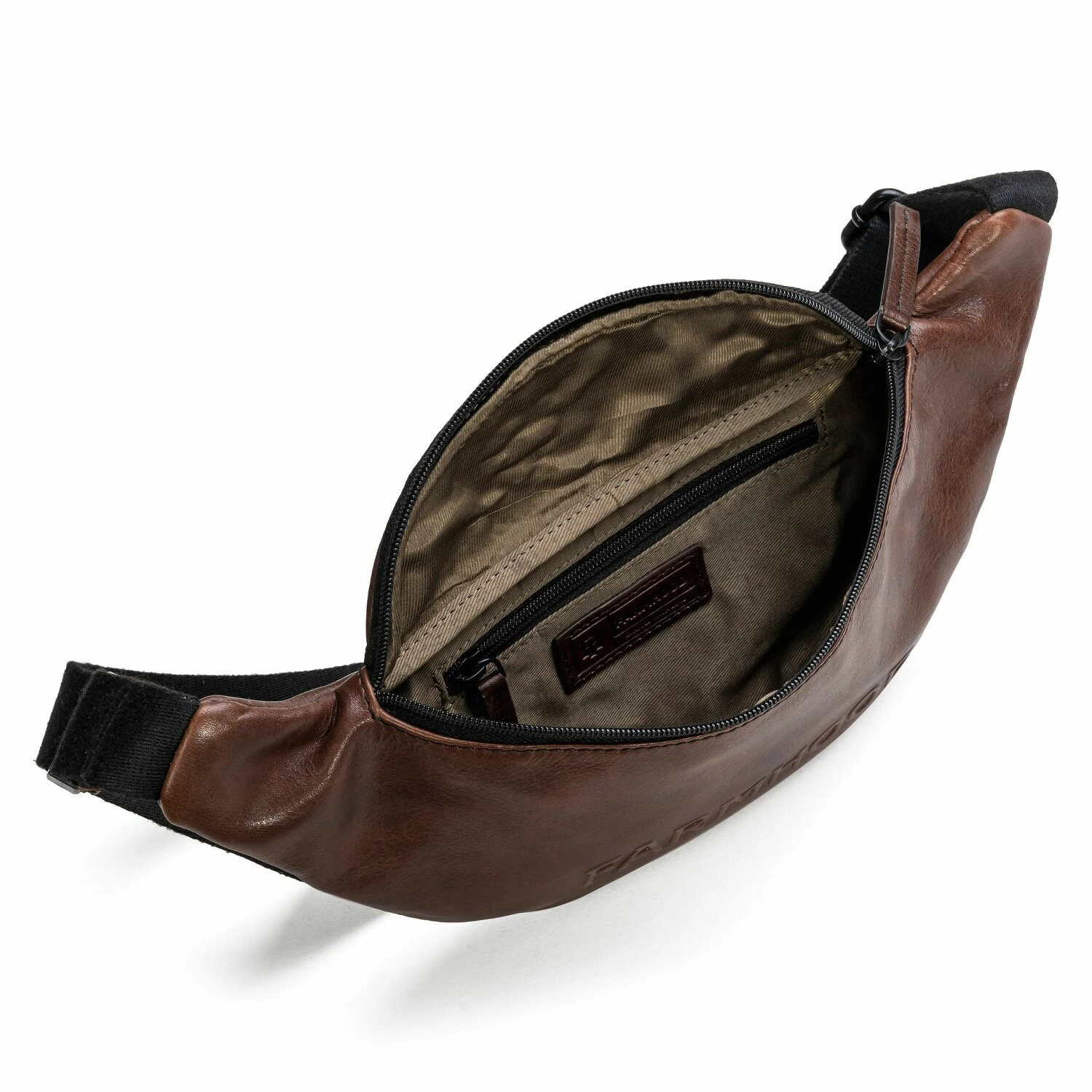 Bandolera de piel de calidad de Farmhood con un gran interior. El compartimento con cremallera de la parte trasera ofrece espacio de almacenamiento adicional.
