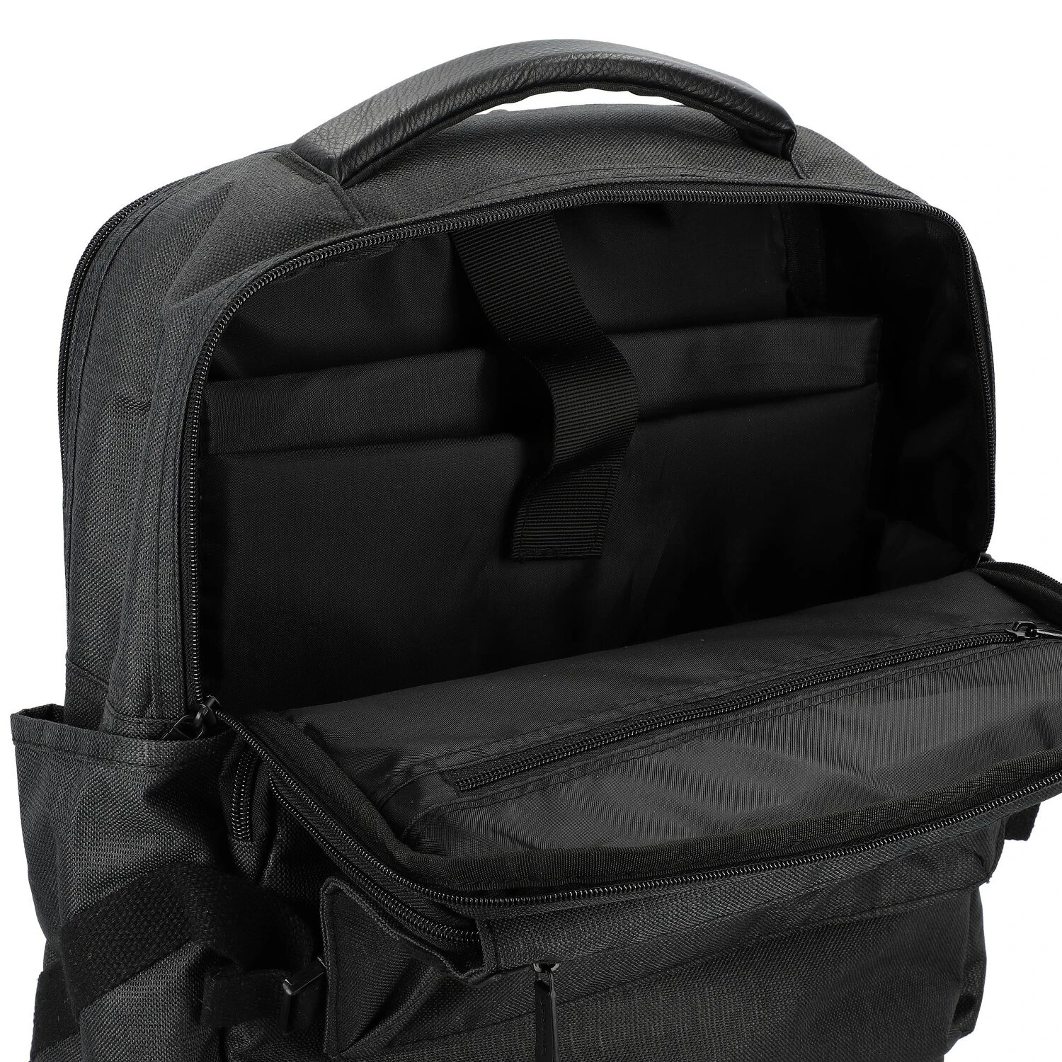 Mochila funcional de Dermata con muchos compartimentos enchufables y con cremallera dentro y fuera de la mochila para un gran aprovechamiento del espacio de almacenamiento y una visión de conjunto. La comodidad se debe, por ejemplo, al agradable acolchado de la espalda. Gracias a la función trolley, la mochila también es ideal para viajar.