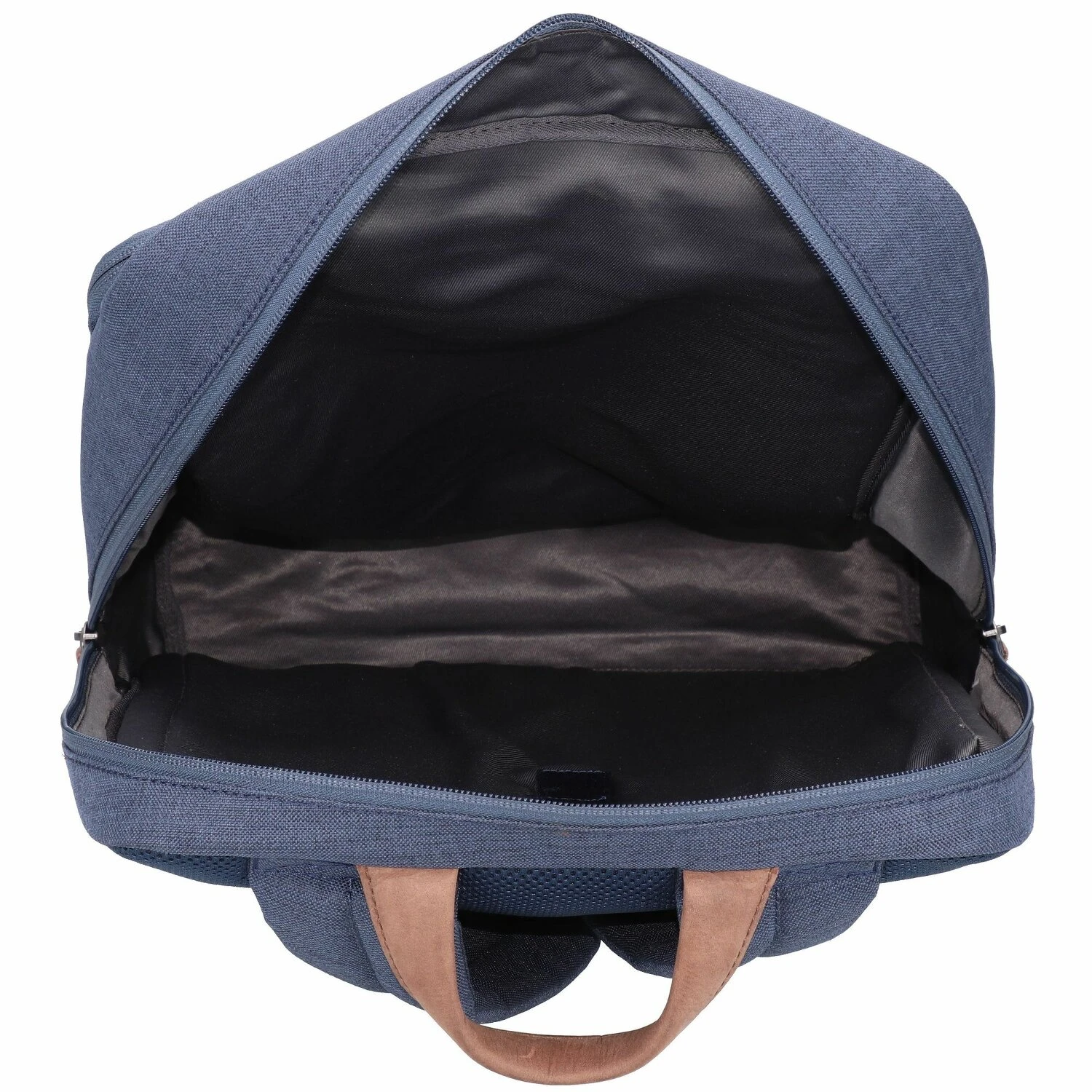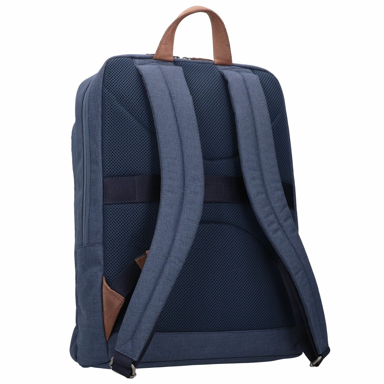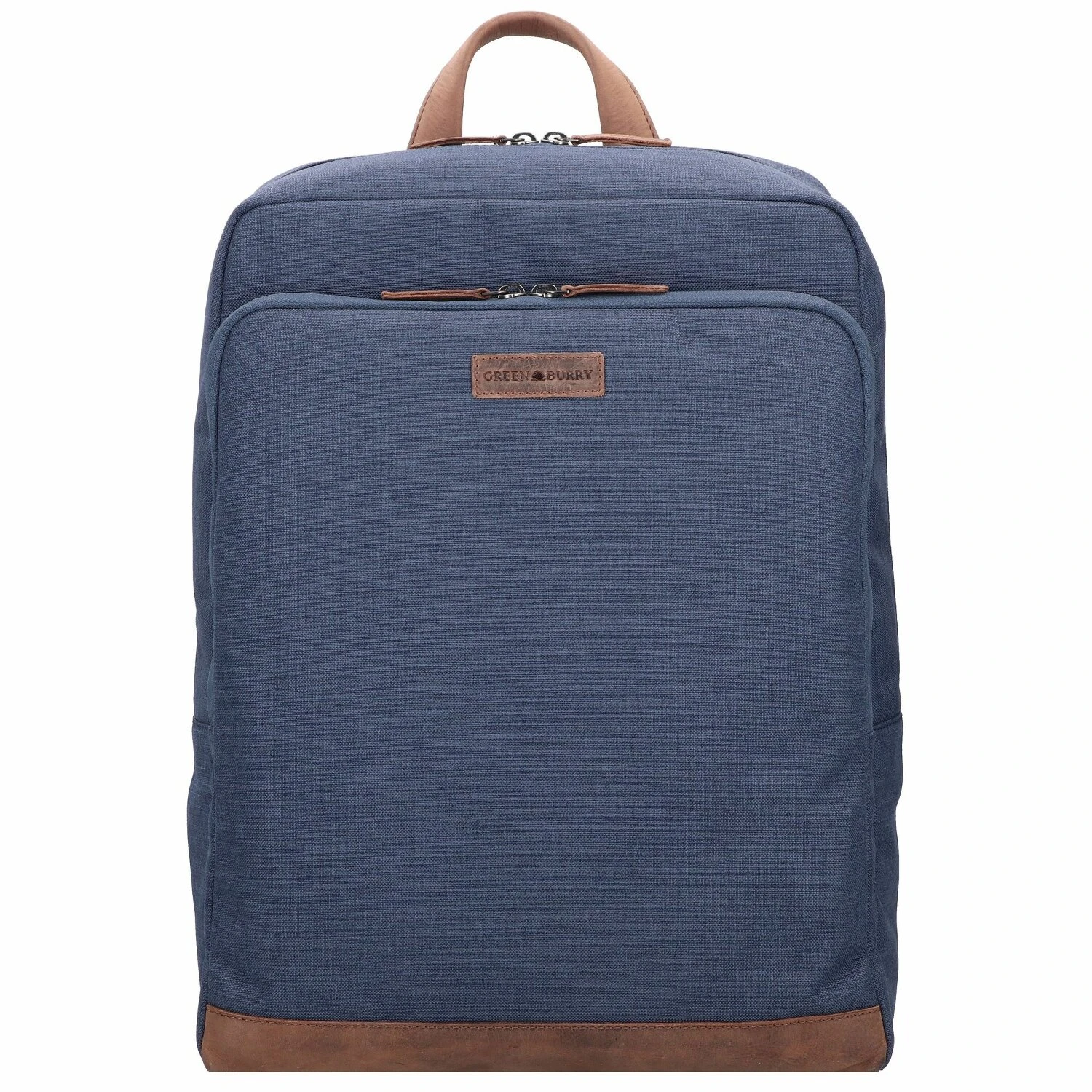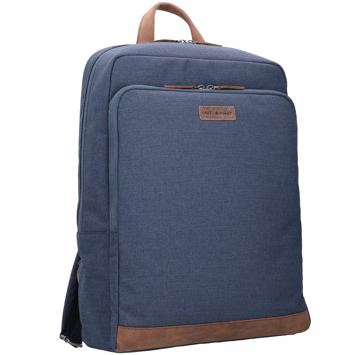Mochila ecológica de Greenburry con tejido fabricado a partir de botellas de PET recicladas y aplicaciones de piel. La mochila consta de un compartimento principal con funda acolchada para el portátil y un compartimento lateral que incluye bolsillos abiertos y un bolsillo con cremallera. Un sistema de transporte acolchado con correas ajustables para los hombros y función de enganche de trolley en la espalda hacen de la mochila «Byron» una compañera cómoda y elegante para el uso diario en la oficina o los viajes.