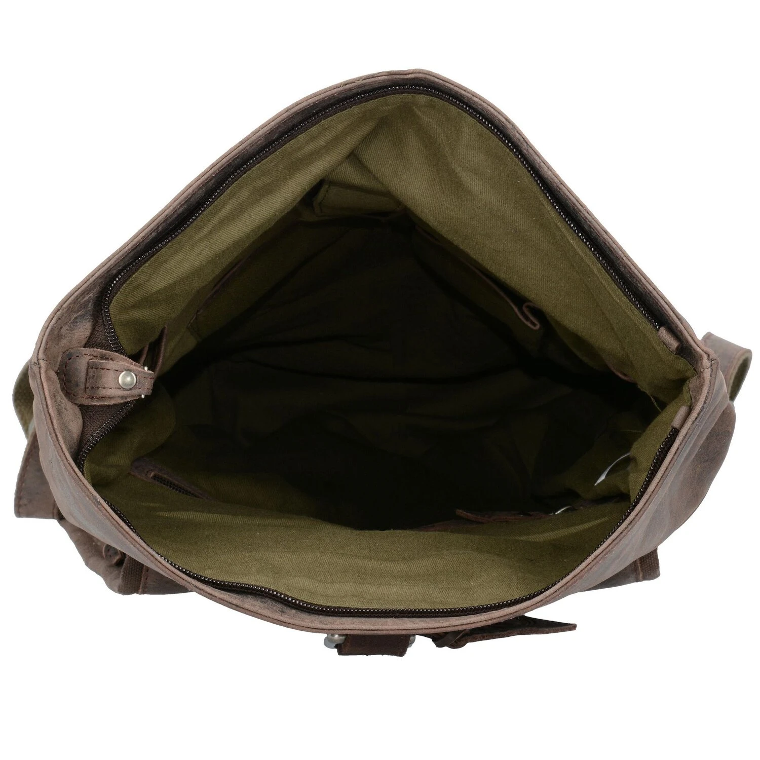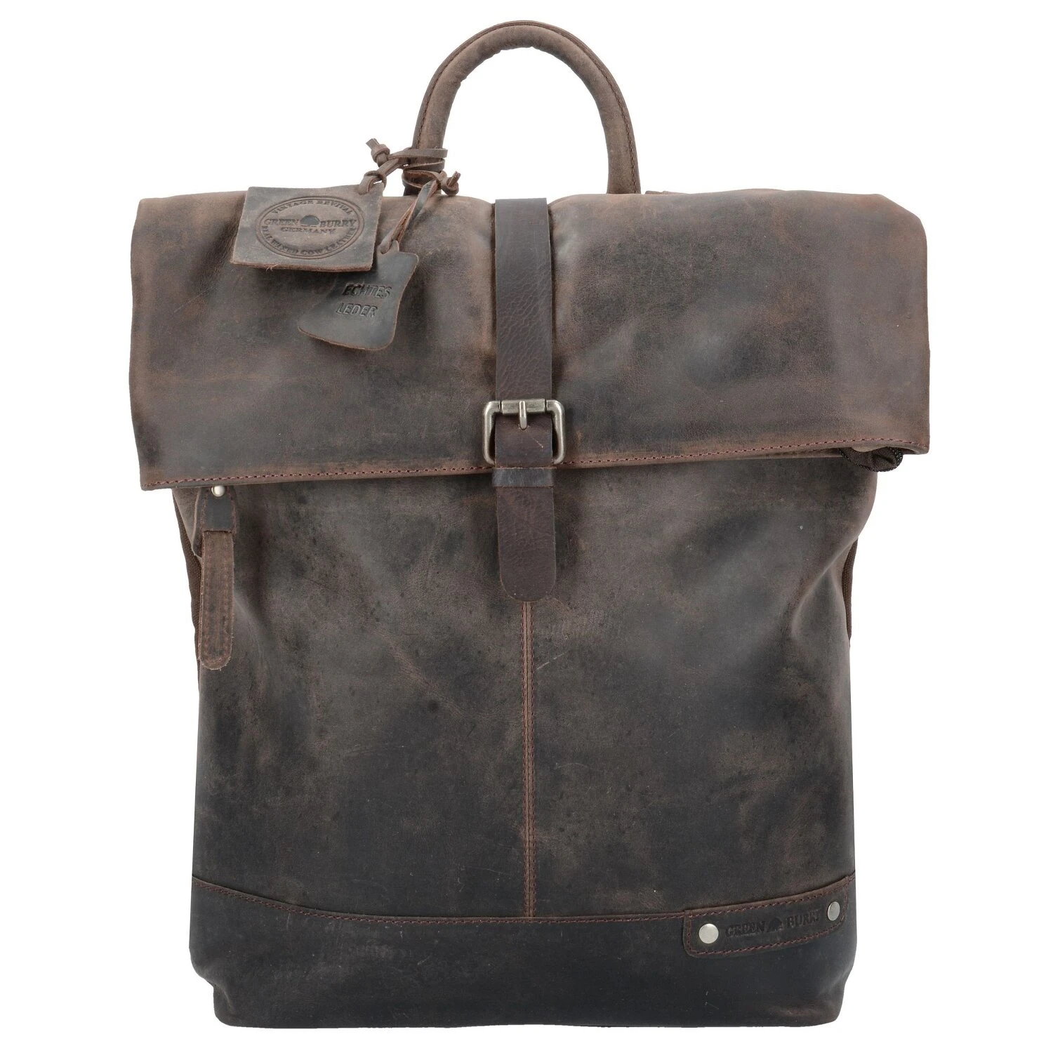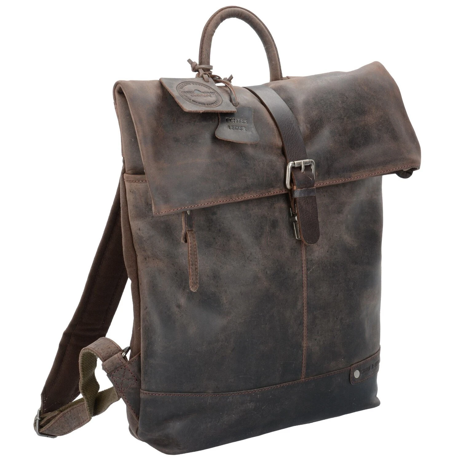 Moderna mochila de Greenburry fabricada en robusta piel. Con varios compartimentos y práctica solapa. La compañera ideal para los desplazamientos.