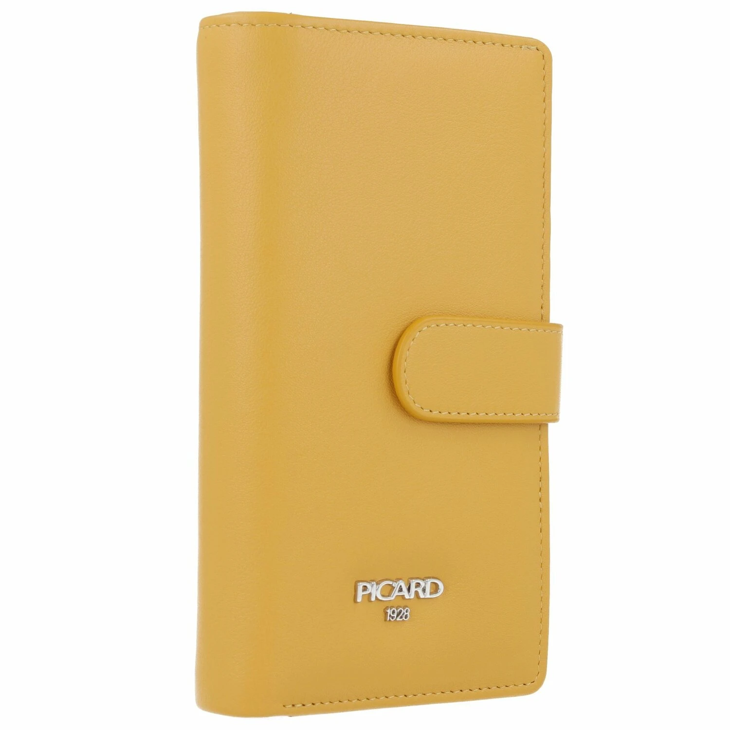 Elegante tarjetero de cuero de la marca Picard que ofrece una enorme cantidad de espacio para las tarjetas de crédito y que, además, cuenta con un compartimento con cremallera en el que se puede guardar fácilmente el dinero en efectivo u otros objetos de valor.