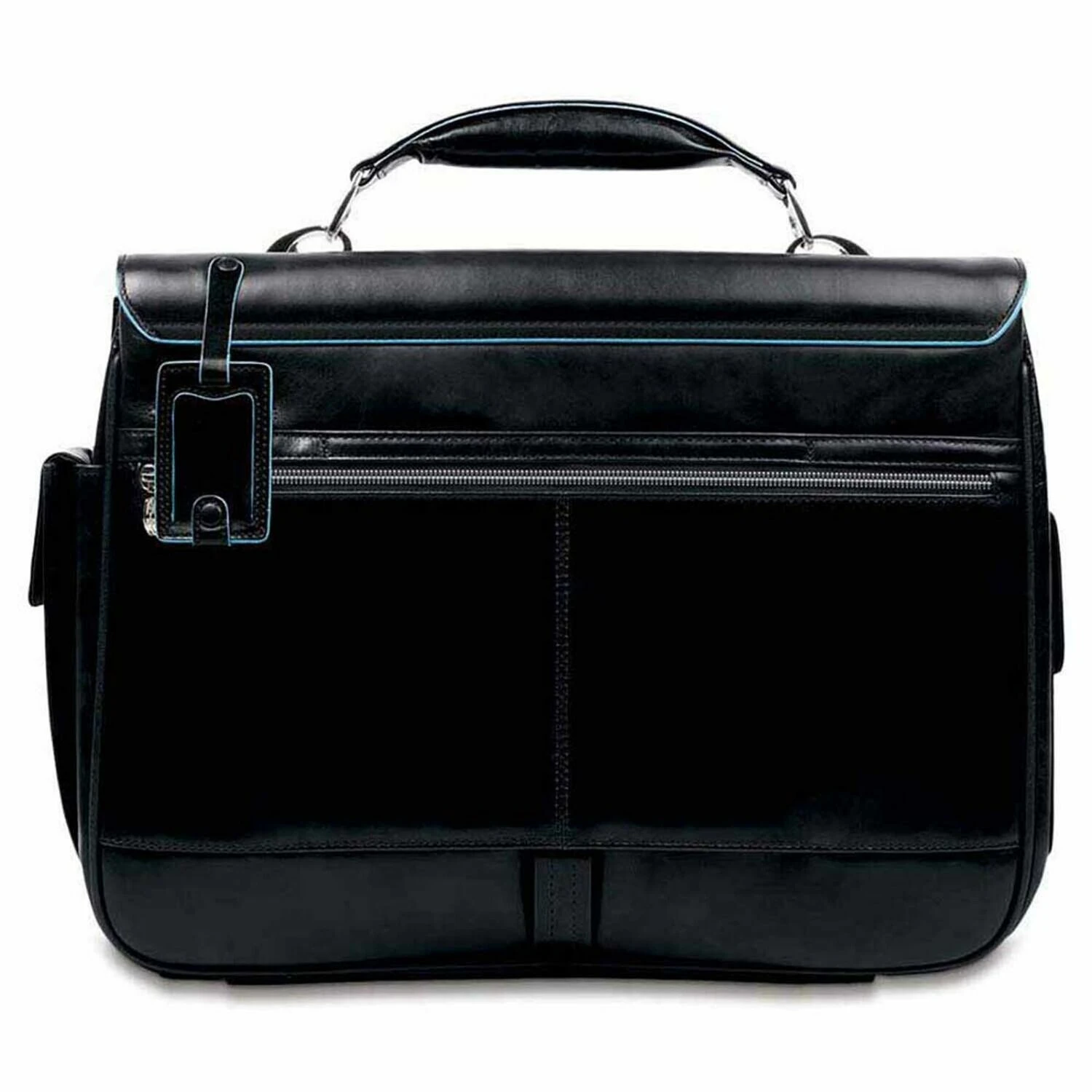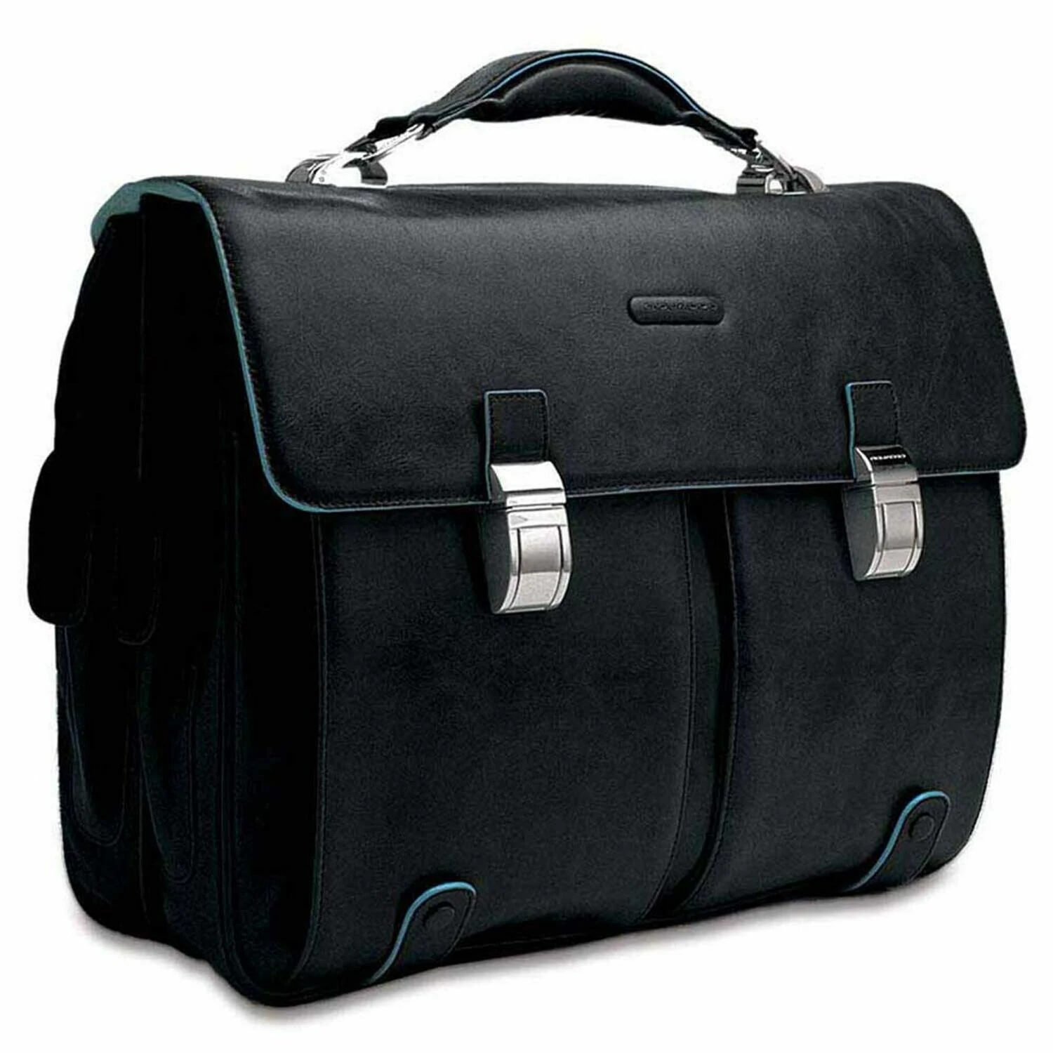 Piquadro Maletín Cuadrado Azul De Cuero Con Compartimento Para El Portátil De 43 Cm