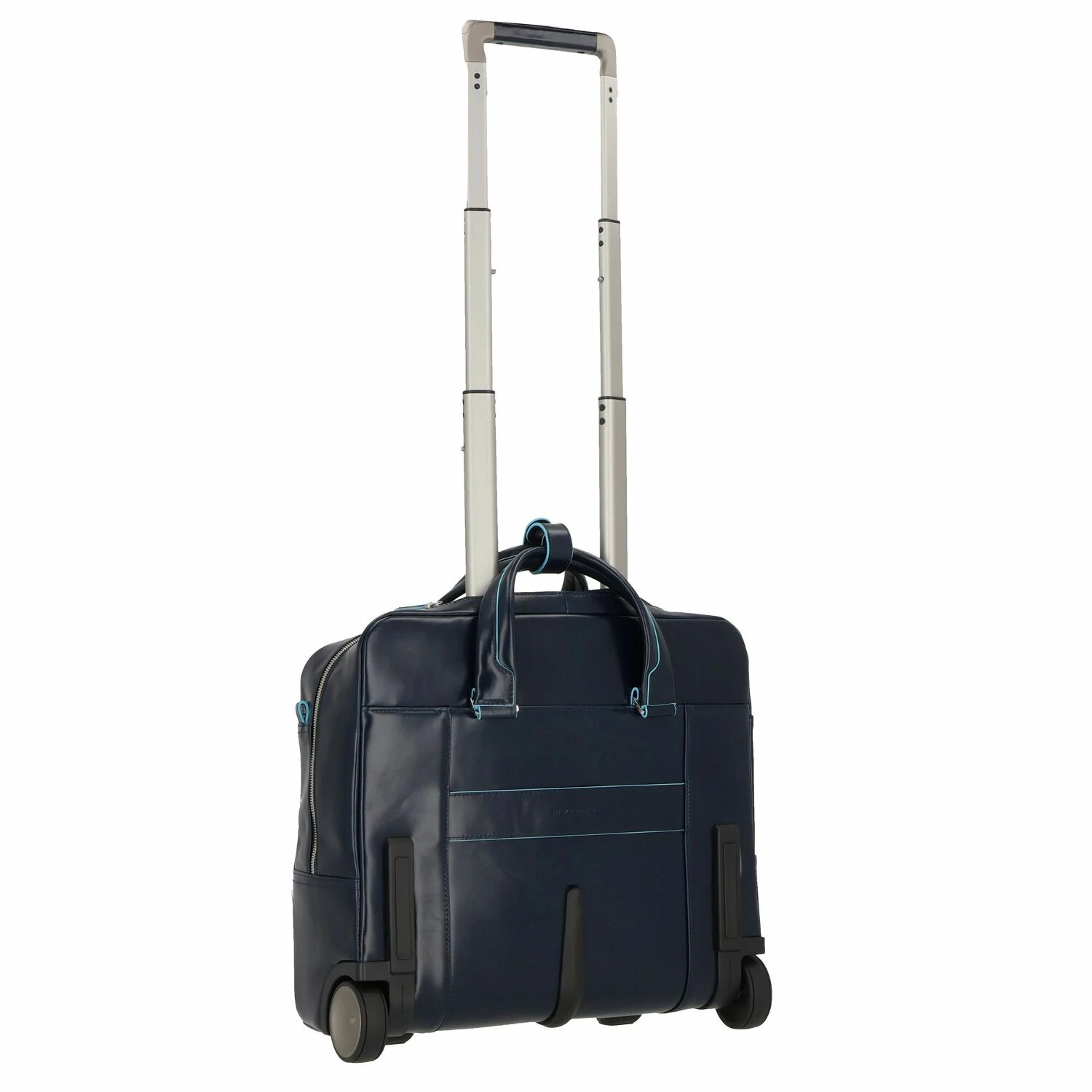 Piquadro Trolley Azul Cuadrado De 2 Ruedas De Cuero Con Compartimento Para El Portátil De 36 Cm