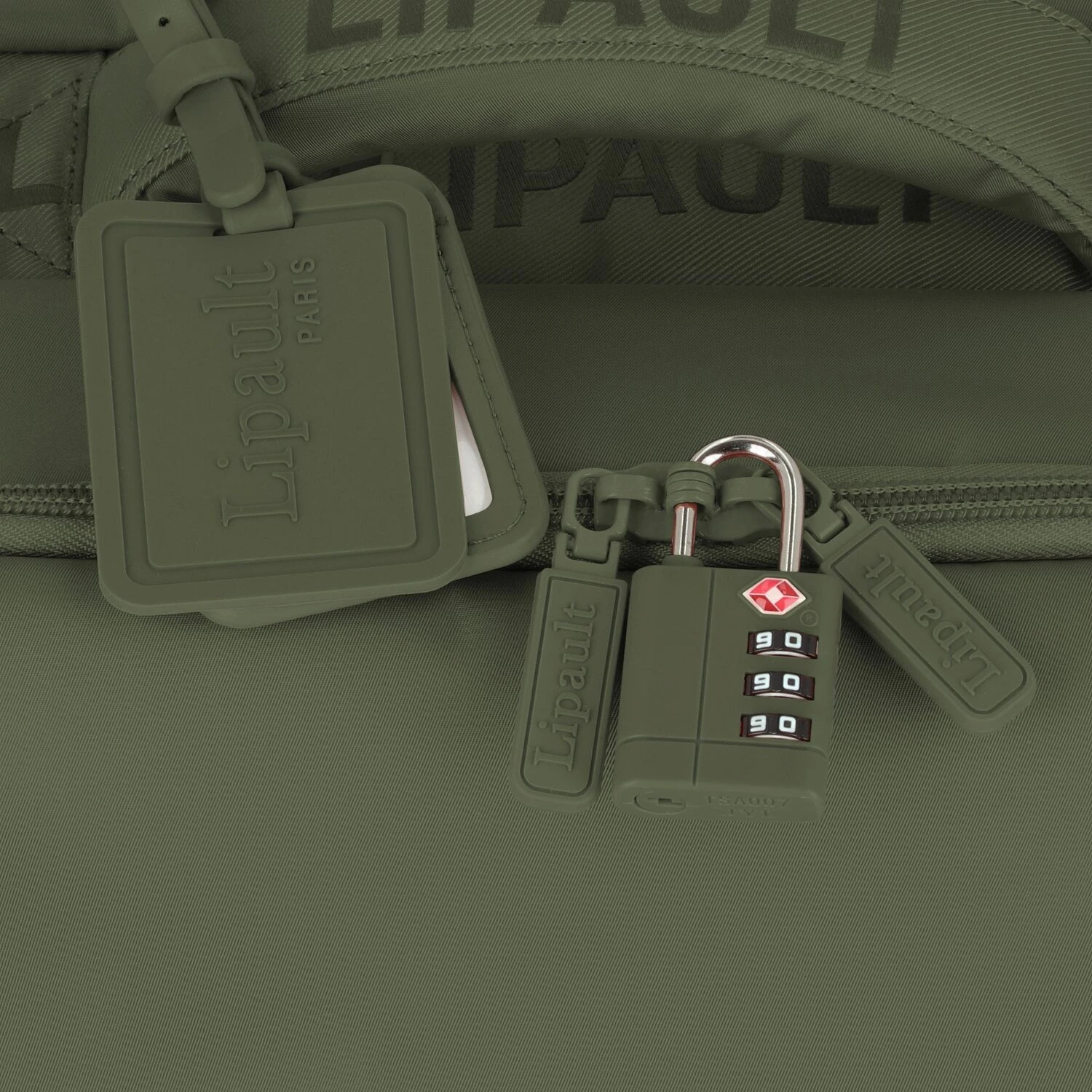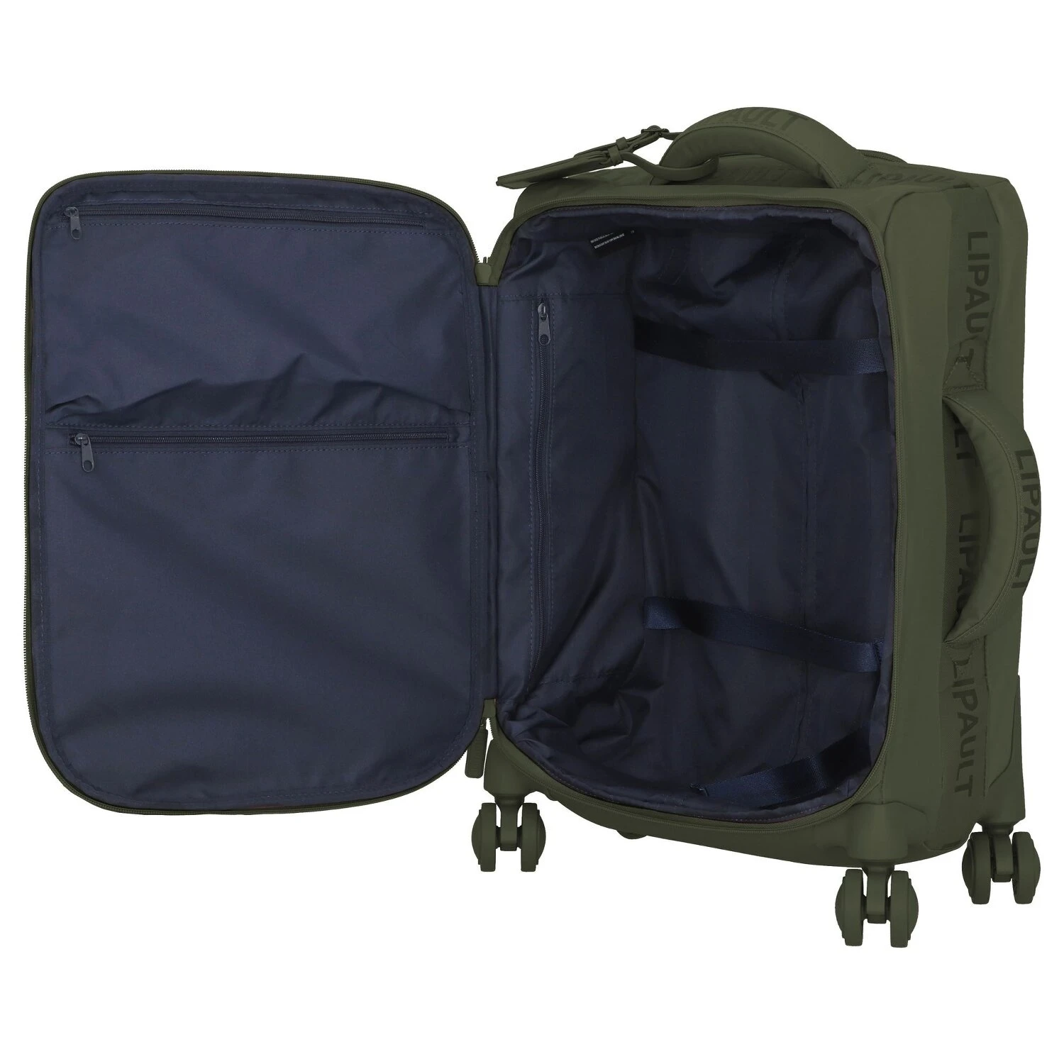 Práctico trolley de 4 ruedas de Lipault fabricado en resistente nailon. Esta pequeña maleta se ha desarrollado especialmente como equipaje de cabina. A pesar de su tamaño, ofrece mucho espacio y tiene tres compartimentos con cremallera en el interior y un compartimento con cremallera en la parte delantera. La maleta está equipada con un asa telescópica bloqueable y un asa de transporte. La fiel compañera de sus viajes.