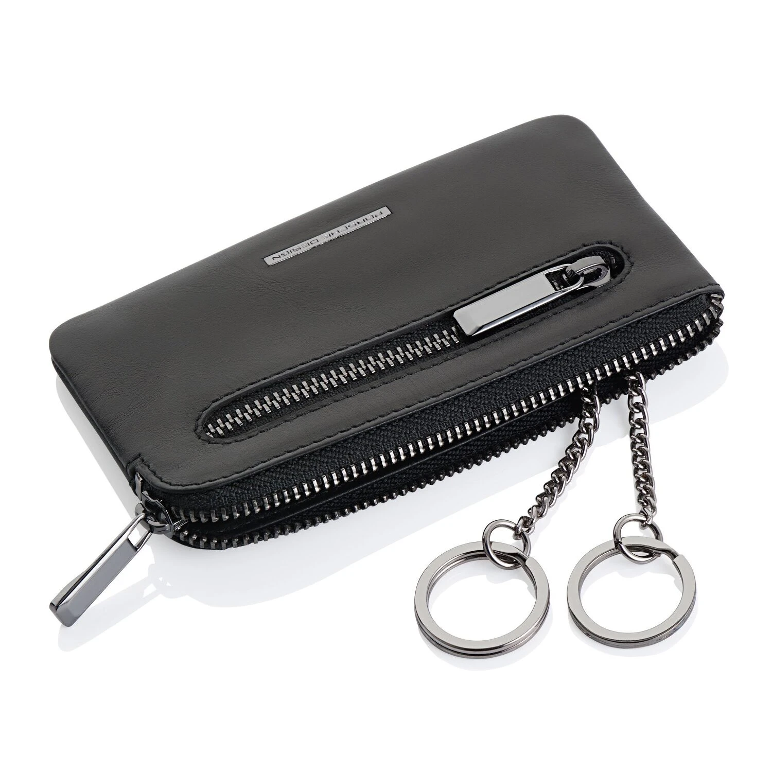 El estuche para llaves de Porsche Design está fabricado en la más fina piel con un agradable agarre y está equipado con dos anillos para sujetar las llaves.