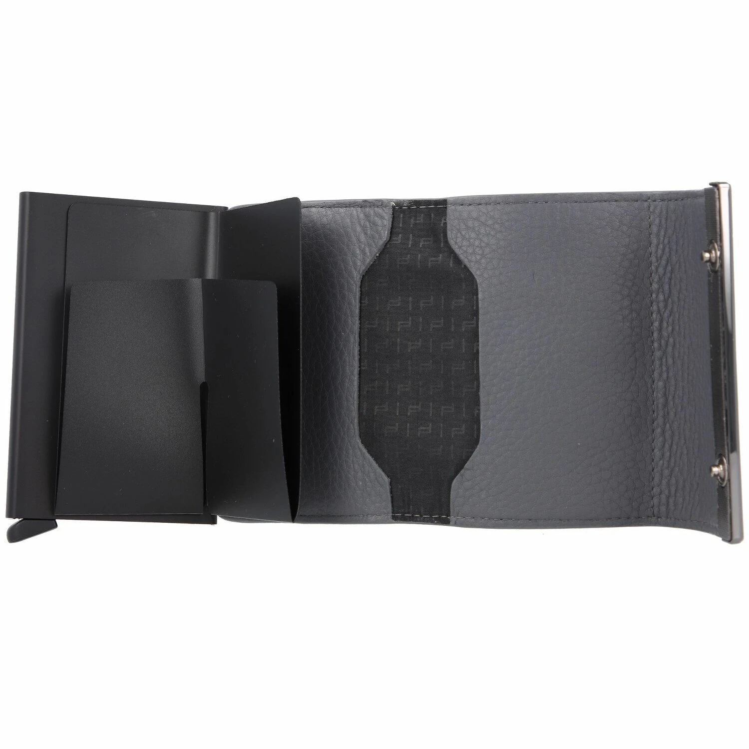 Moderno tarjetero de Porsche Design fabricado en piel de vaca granulada. El maletín tiene dos compartimentos para tarjetas con espacio para hasta 4 tarjetas, un compartimento para billetes y un Cardprotector incorporado con espacio para hasta 6 tarjetas con un mecanismo que dispensa las tarjetas por etapas. También está equipado con protección RFID. Una necesidad para el empresario moderno.