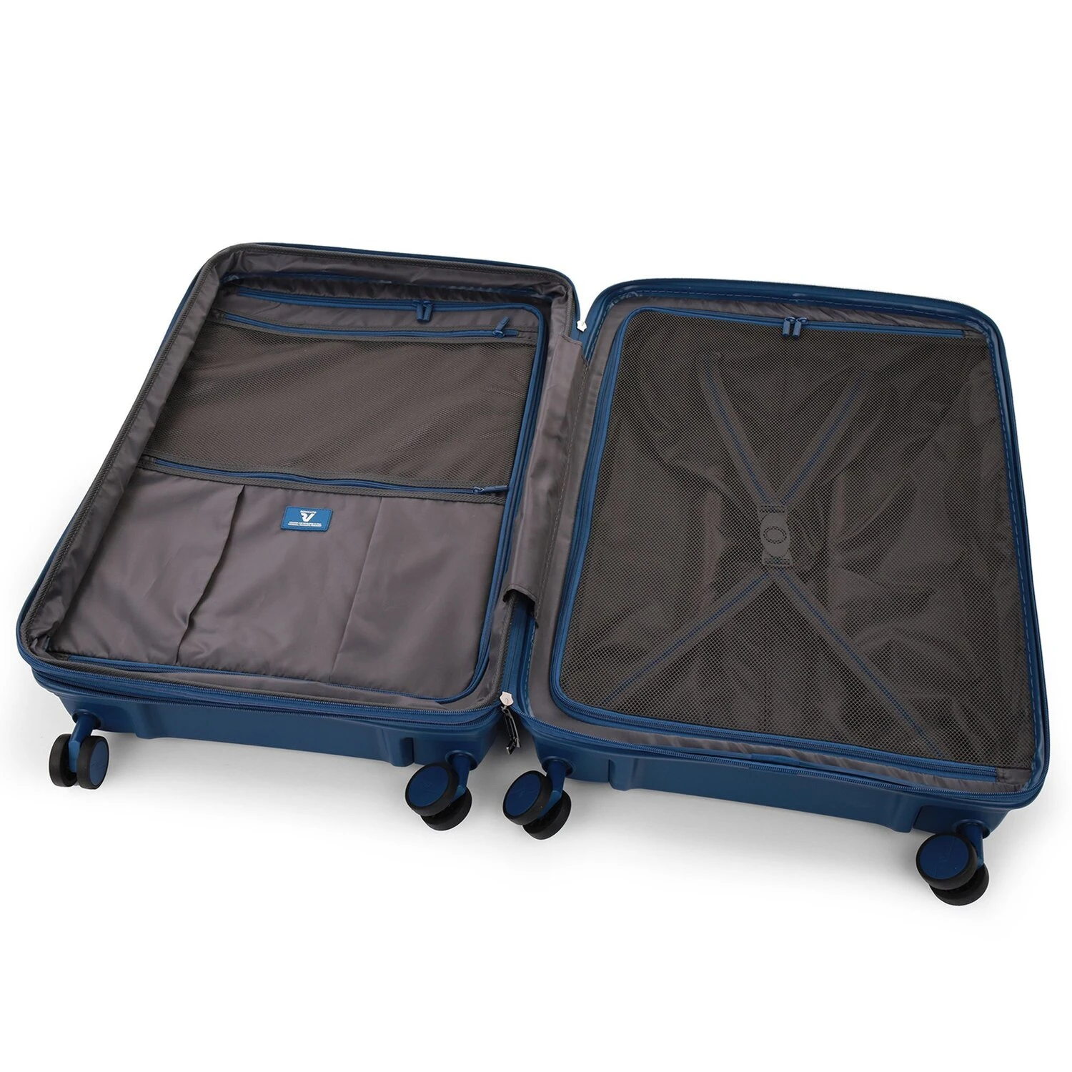 Carro bien organizado de la serie Skyline de Roncato. Dispone de un amplio compartimento principal con una correa cruzada y un compartimento de lino, así como compartimentos adicionales con cremallera en la parte delantera. Equipada con cuatro ruedas dobles fáciles de manejar y silenciosas y una cerradura TSA integrada para mayor seguridad.