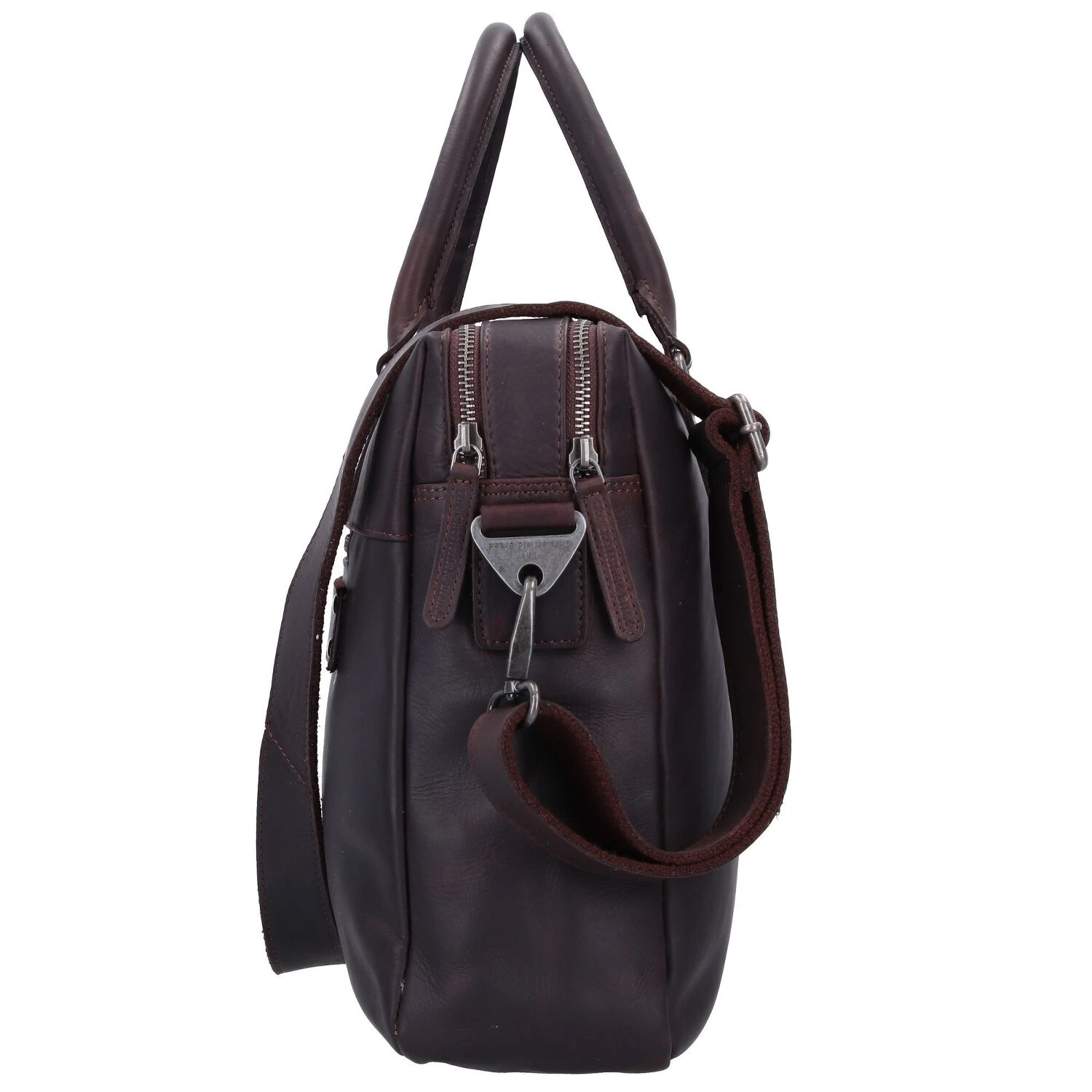 Maletín de moda fabricado en piel resistente de alta calidad con compartimento acolchado para portátil, para dispositivos con una diagonal de pantalla de hasta aprox. 38 cm (15 pulgadas). Además, en uno de los dos compartimentos principales hay un compartimento con cremallera para el móvil. También tiene un asa sólida y una correa para el hombro desmontable y ajustable, lo que la convierte en la compañera perfecta para el uso diario en la oficina y los viajes de negocios.