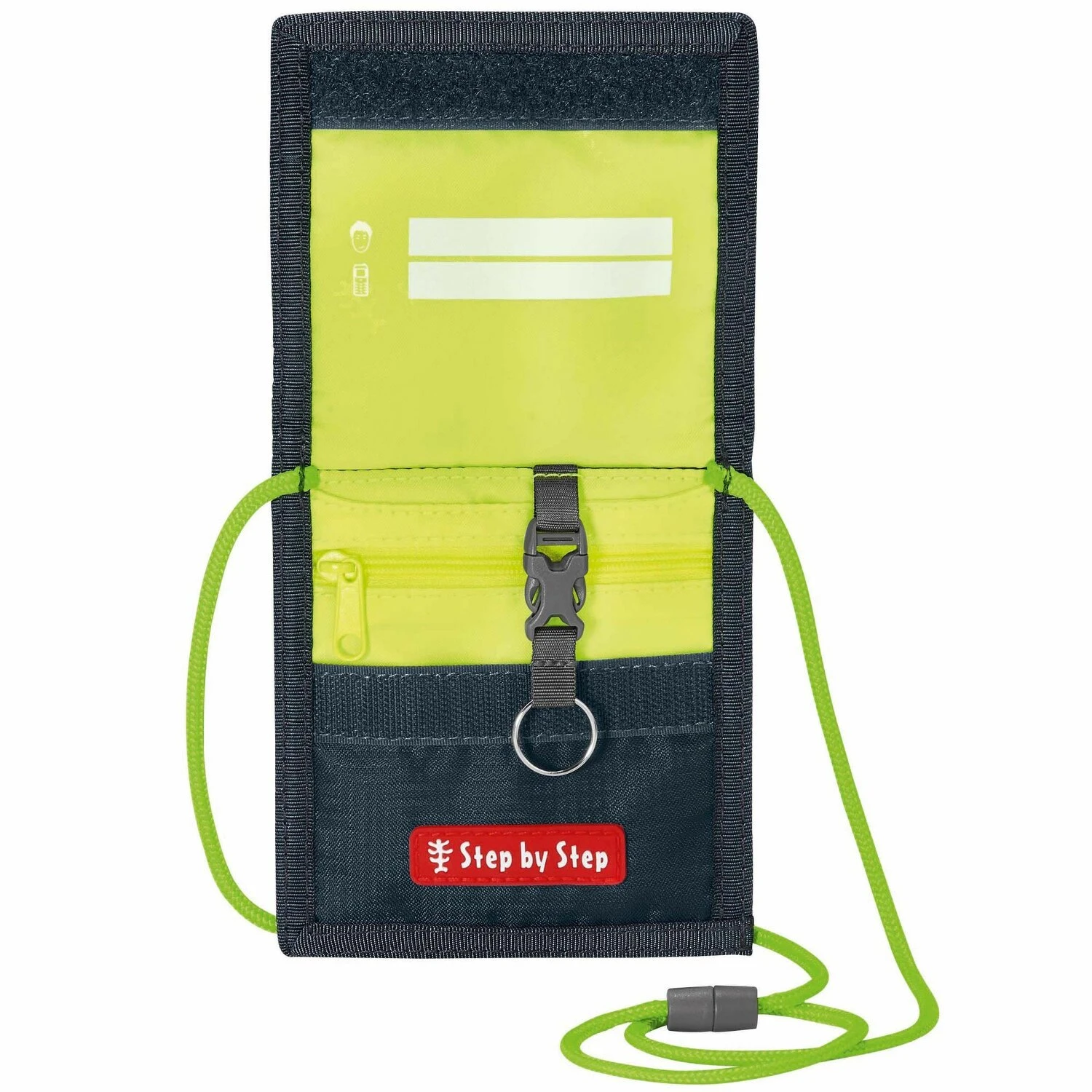 Su hijo puede guardar todo lo que necesita en la bolsa de cuello Step by Step: Billete, dinero, carné de estudiante, llaves, etc. En el interior hay un campo de direcciones y un llavero extraíble. Hay un bolsillo transparente en la parte trasera y el cordón tiene un cierre de seguridad.