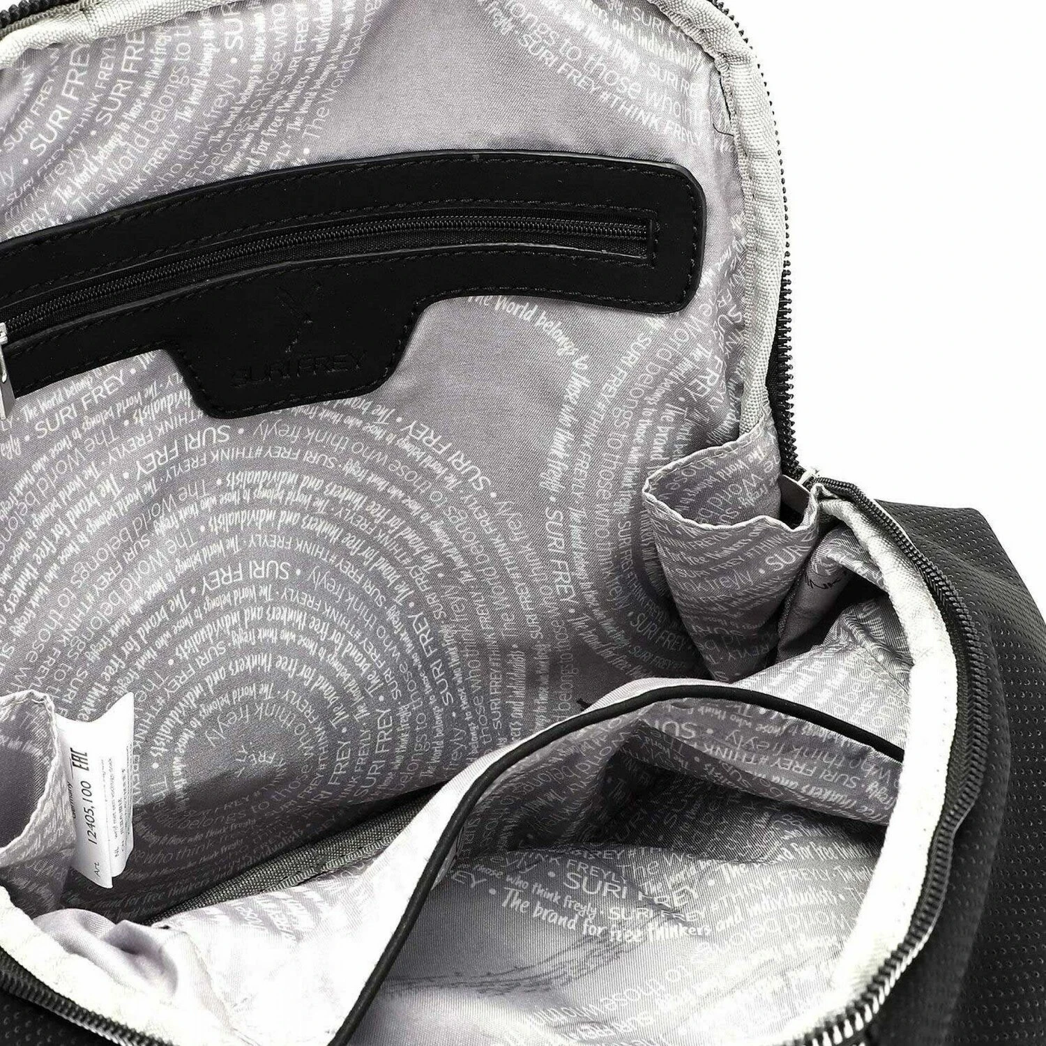 Elegante y práctica mochila urbana de Suri Frey hecha de suave material perforado en aspecto de cuero con cremallera y mosquetón. Dispone de un compartimento principal claramente dispuesto, así como de otros compartimentos y bolsillos, por lo que ofrece unas condiciones óptimas para guardar las pertenencias más importantes. El compañero de moda para el día a día con un diseño inusual.