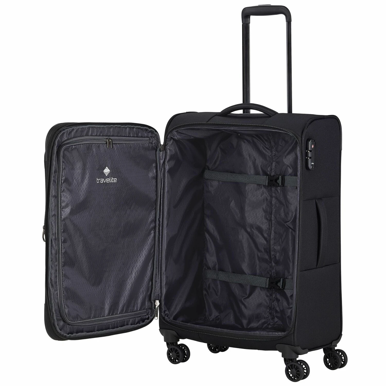 Elegante juego de maletas trolley de Travelite con 4 ruedas cada una. En el interior, las maletas ofrecen mucho espacio de almacenamiento, y el compartimento con cremallera y las correas de embalaje mantienen todo en su sitio cuando está de viaje. Dimensiones del Trolley S: 38 cm x 20 cm x 56 cm / Dimensiones del Trolley M: 42 cm x 27-31 cm x 67 cm / Dimensiones del Trolley L: 46 cm x 32-36 cm x 78 cm / – Volumen del Trolley S: 34 L / Volumen del Trolley M: 60 L / Volumen del Trolley L: 90 L – Peso del Trolley S: 2,45 kg / Peso del Trolley M: 2,87 kg / Peso del Trolley L: 3,40 kg.