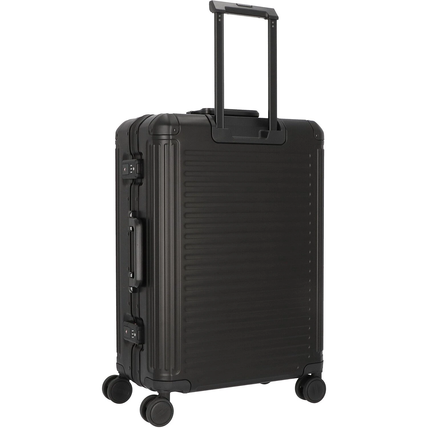 Este carro de aluminio robusto es elegante, estable y de gran calidad. Impresiona por su concepto de diseño clásico e intemporal con ranuras horizontales. Con una cerradura TSA para mayor seguridad, cuatro silenciosas ruedas dobles que pueden moverse en todas direcciones y compartimentos interiores bien pensados, el trolley es un compañero funcional y chic para cada viaje.