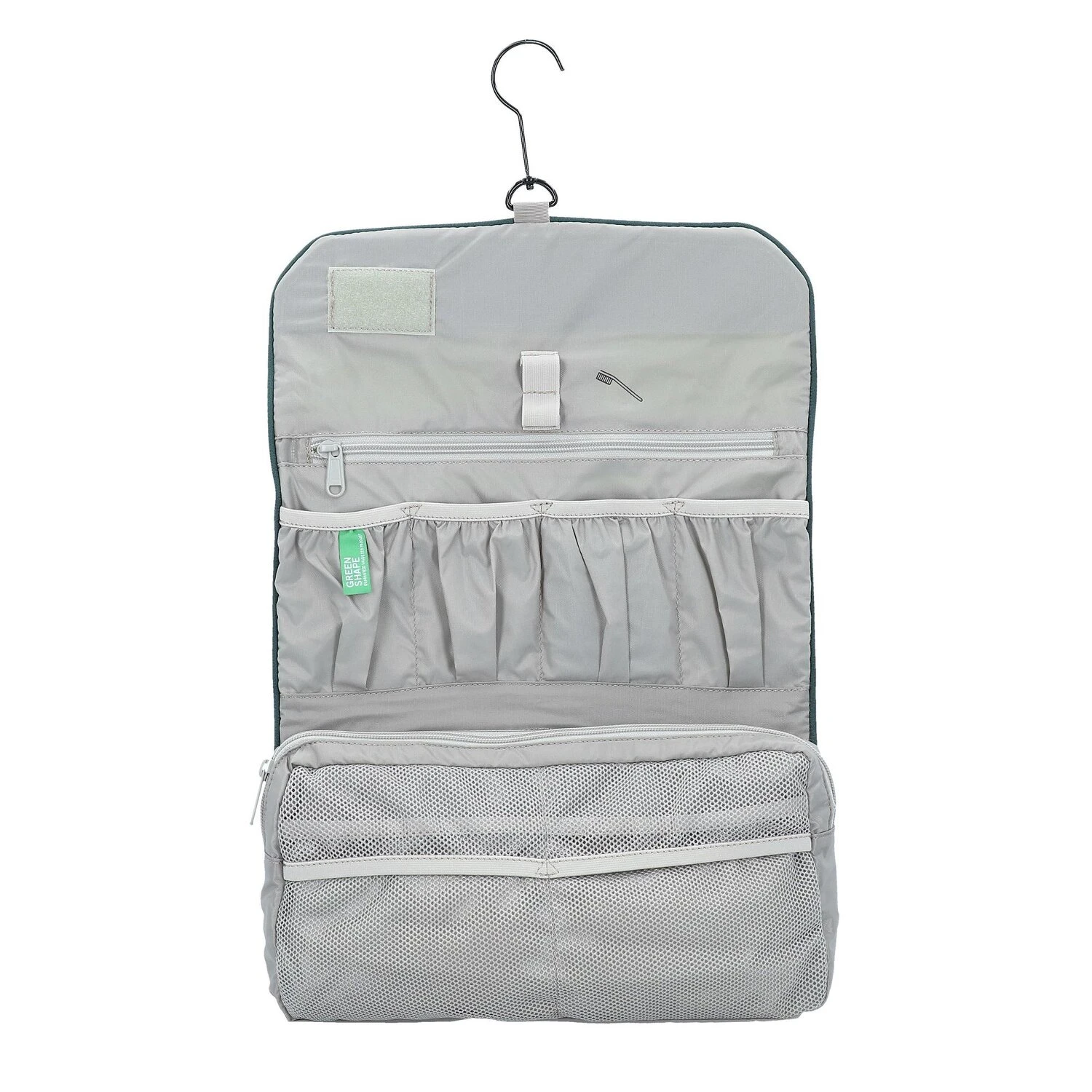 La máxima estrella entre los neceseres combina una excelente cantidad de espacio con una organización y claridad perfectas. La gran abertura, los diversos compartimentos organizadores, el espejo integrado, el portacepillos de dientes y el gancho para colgar no dejan nada que desear.