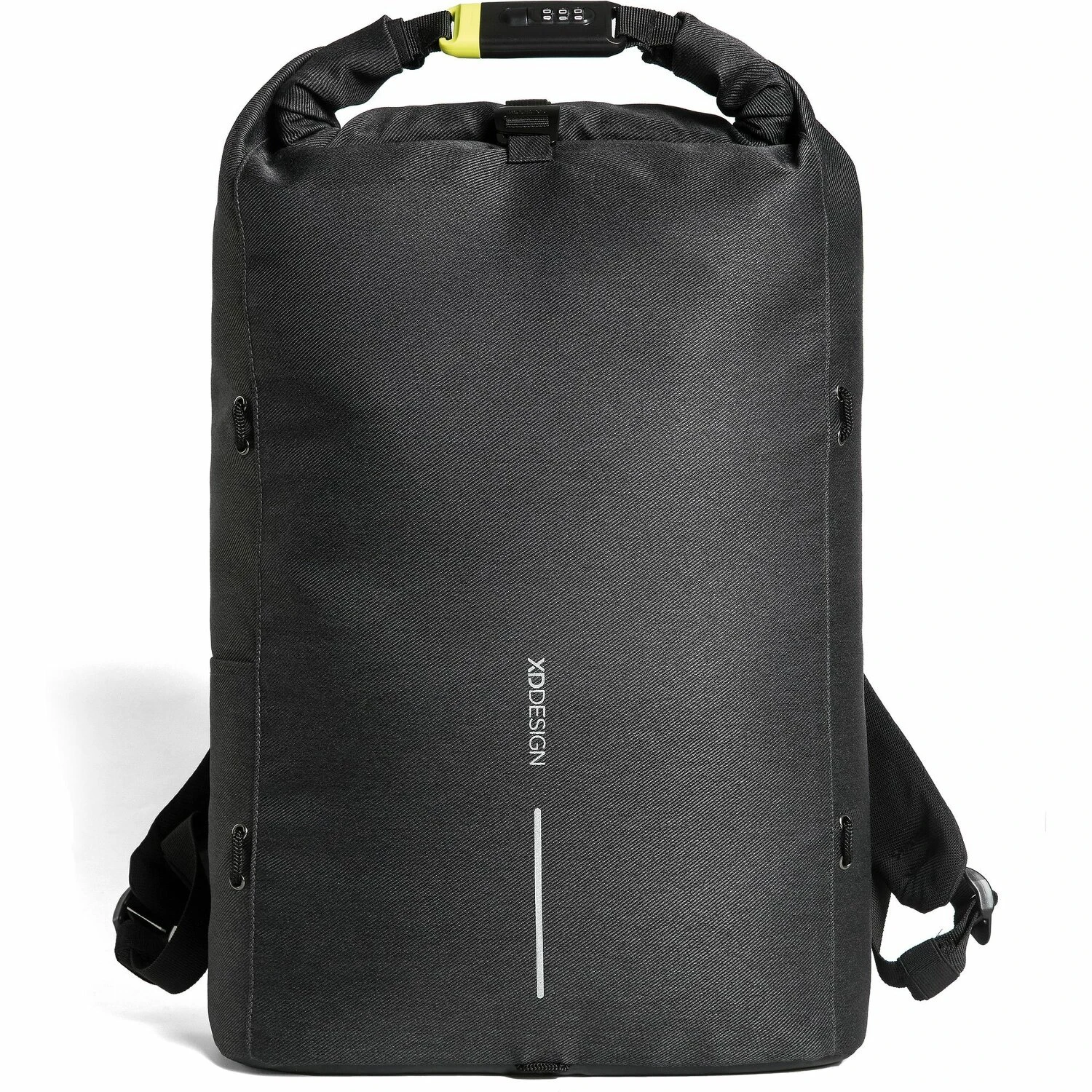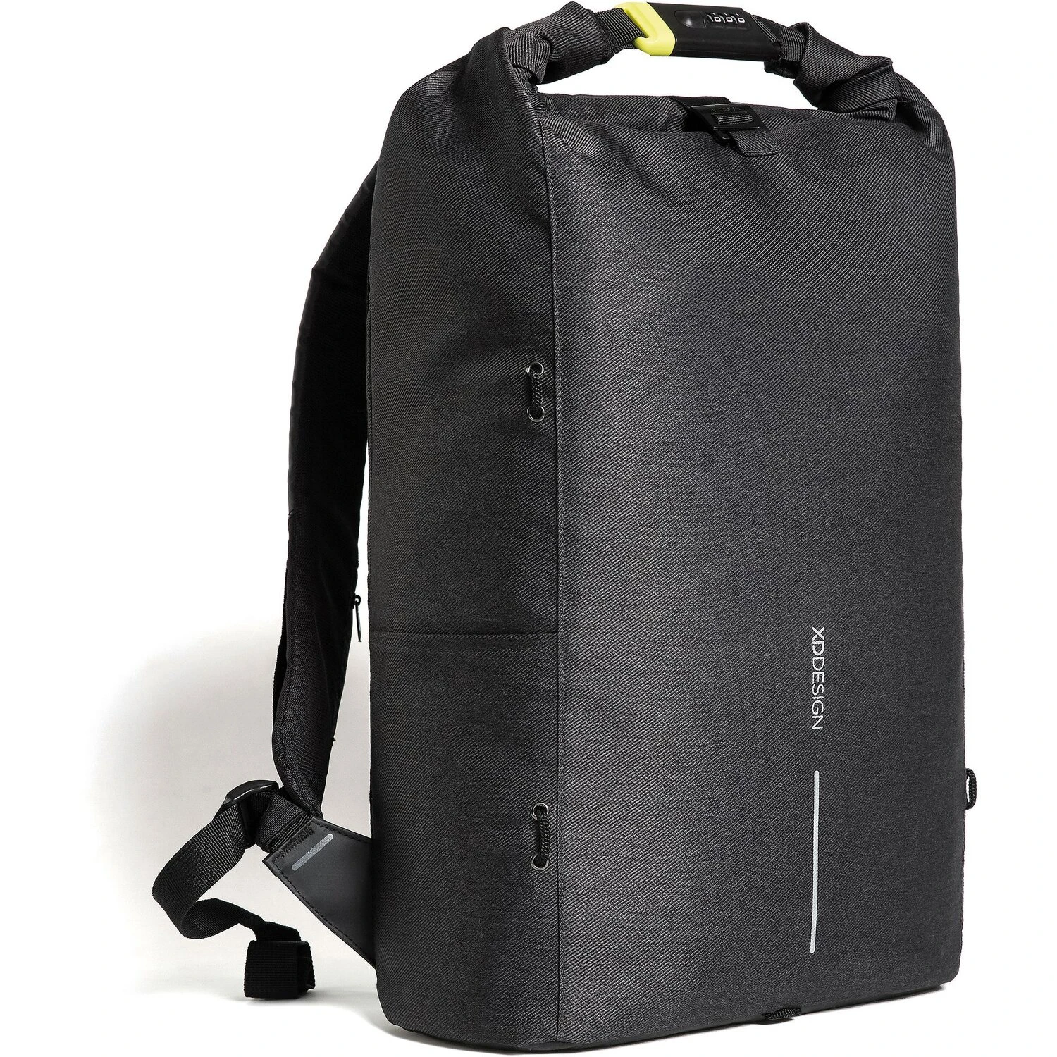 La mochila antirrobo de XD Design convence por sus numerosas características de seguridad. Está fabricada con material repelente al agua (no resistente a los cortes) y dispone de cerradura integrada y compartimentos y bolsillos ocultos. Con un sistema de transporte acolchado, ofrece una comodidad de transporte óptima y una buena distribución de la carga. Otras grandes características son: Cierre enrollable con opción de ampliación, función de enganche al trolley trasero, un compartimento acolchado para portátiles con pantalla de hasta 39,5 cm (15,6 pulgadas) aproximadamente, un compartimento acolchado para tabletas, protección RFID contra el robo de datos y mucho más.
